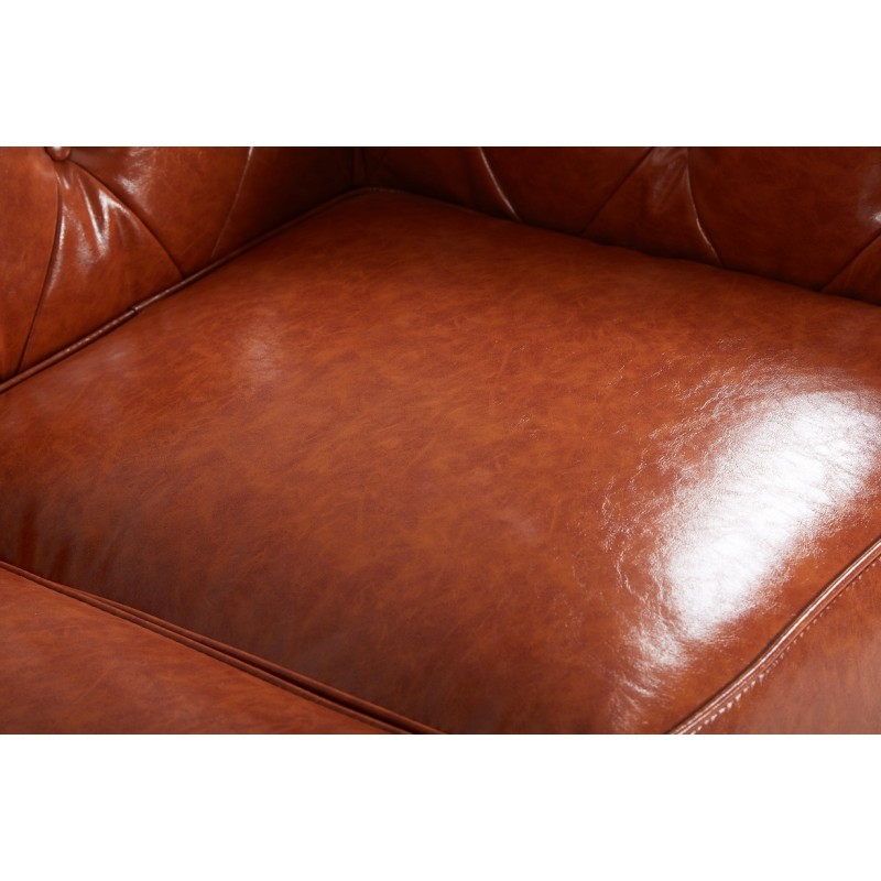 The structure is made of solid wood, ensuring strength and durability. The seat is made of high-density polyurethane foam, providing optimal support and extended comfort. The covering is in vintage faux leather, adding elegance and easy maintenance.