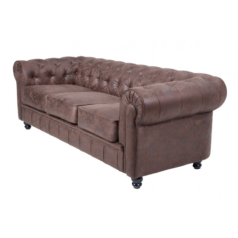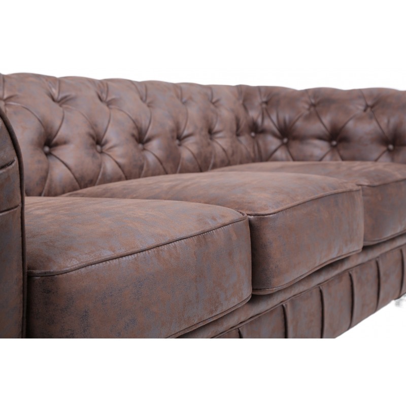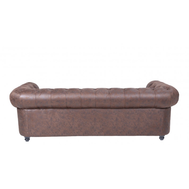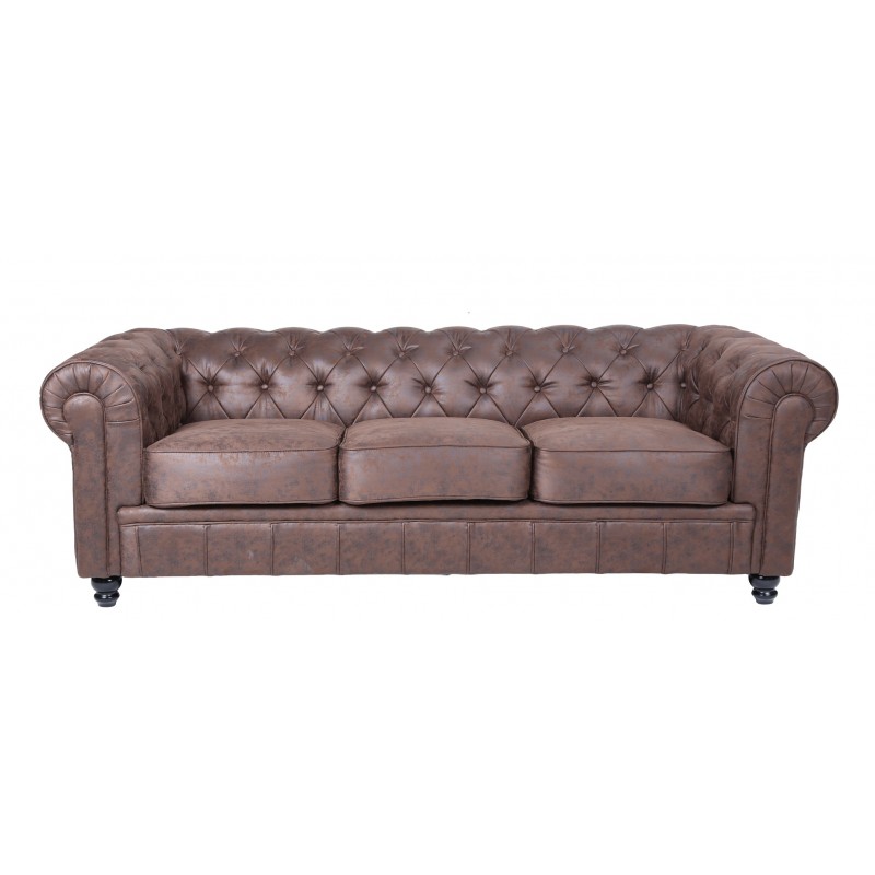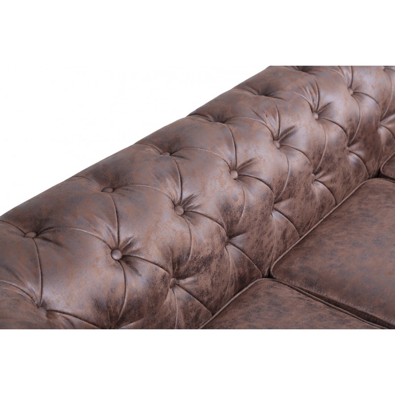 Covered in vintage-style synthetic leather, this sofa offers a refined aesthetic and easy maintenance. It is available in several colors and can be accompanied by an optional matching armchair or 2-seater sofa.