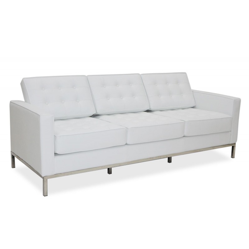 3-seater sofa with generous dimensions (L 205 cm x D 81 cm x H 80 cm). Upholstered in white faux leather, easy to maintain. Also available in a 2-seater version upon request. Customization of colors is possible according to needs.