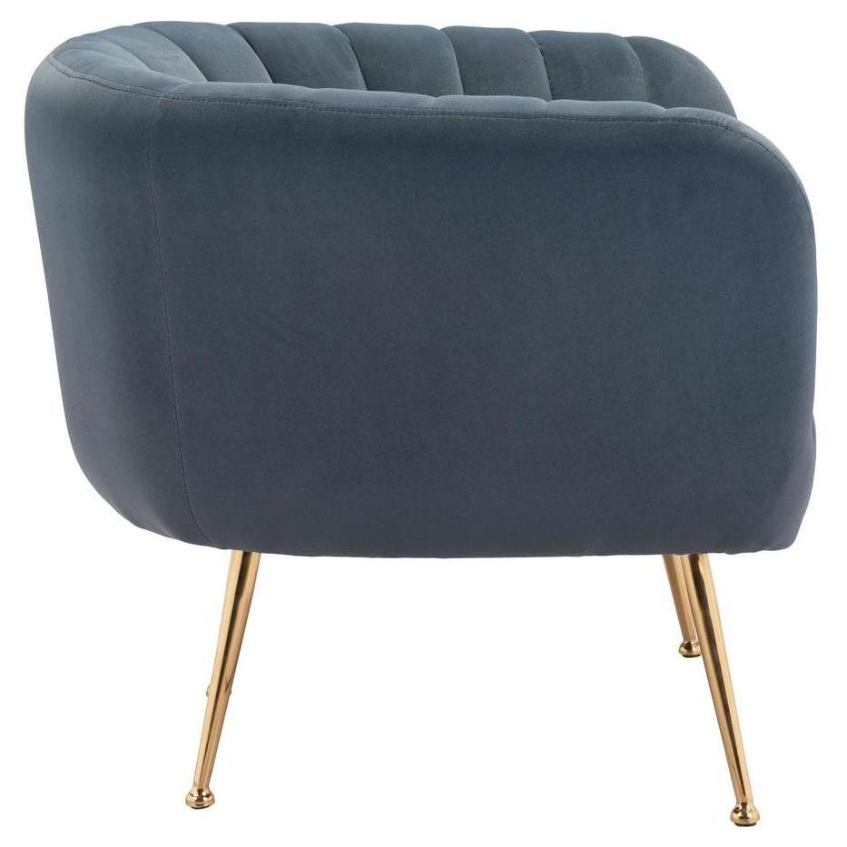 This accent chair stands out for its art deco-inspired design, combining elegance and modernity.