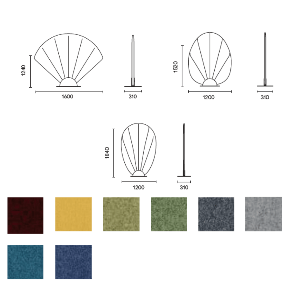 The panel is made of fabric, offering a neat aesthetic while contributing to sound insulation. Its design is intended to easily adapt to different spaces, while being robust enough for daily use.