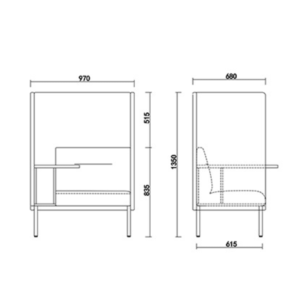 This bench is ideal for work environments such as offices, reception areas, or lounges. It promotes the creation of relaxation or individual work zones while providing an atmosphere conducive to concentration. Its modular design allows it to be adapted to various layouts according to users’ needs.
