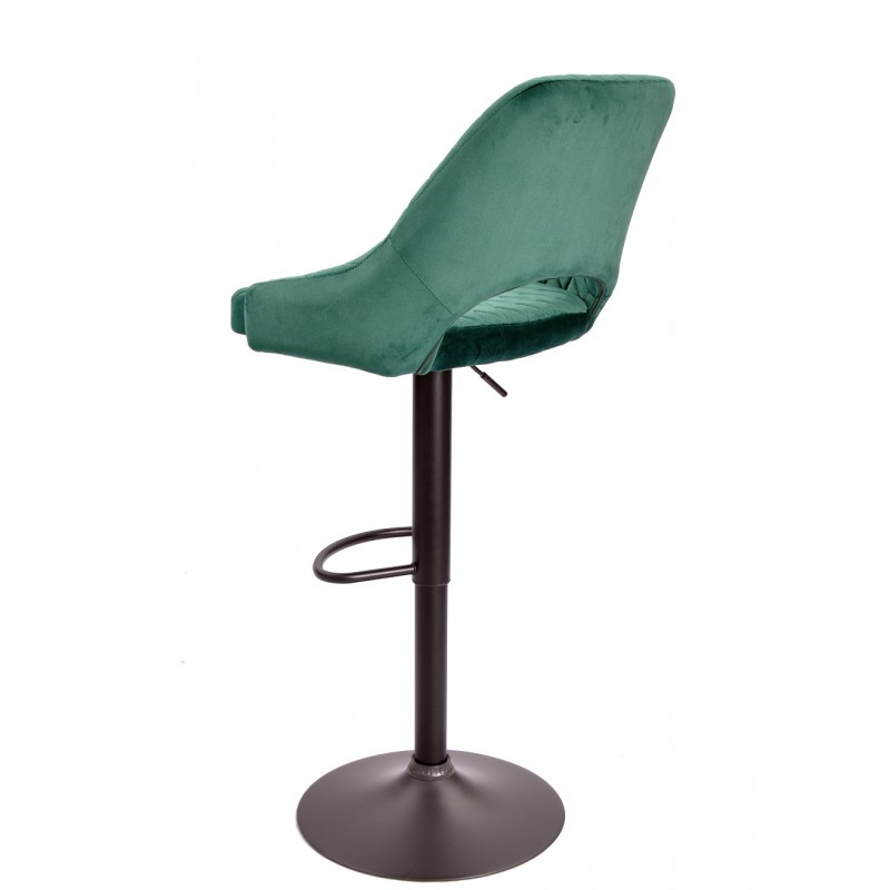 Adjustable Kanten bar stool, black metal frame, dark green velvet seat