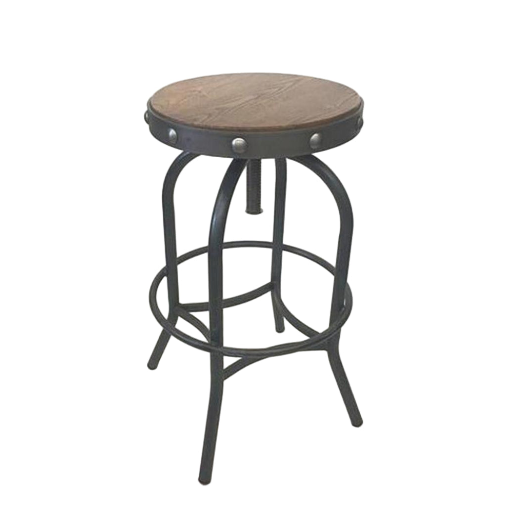 Adjustable metal and solid wood bar stool