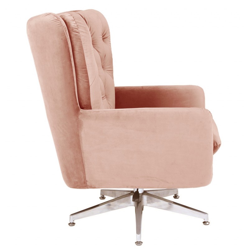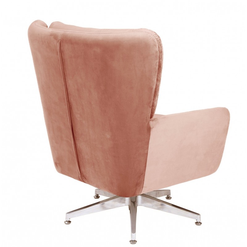 The velvet adds a warm and sophisticated touch, while the chrome base highlights the contemporary design of the armchair.