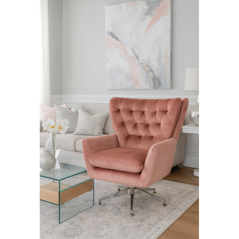 – Upholstered in pink velvet, also available in other colors upon request