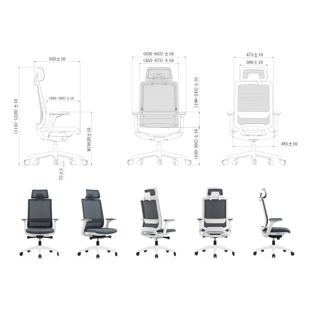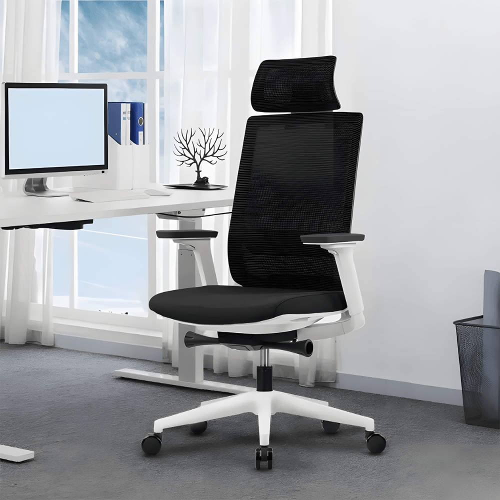 The Chieti chair is designed with a high mesh back, ensuring excellent breathability. The 4D multi-angle adjustable armrests provide natural support and adapt to the morphology of each user. The structure is inspired by the sleek lines of sports cars, combining aesthetics and functionality.