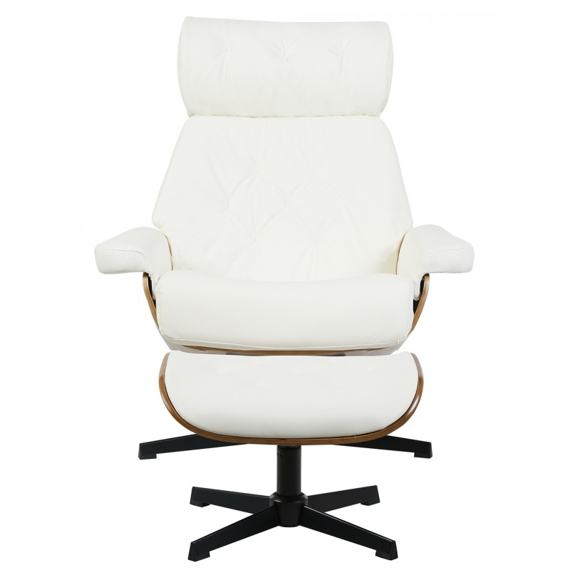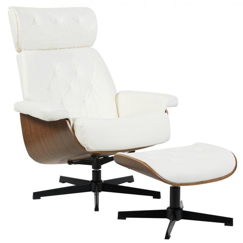 This lounge chair with ottoman is a versatile designer furniture, ideal for professional relaxation spaces.