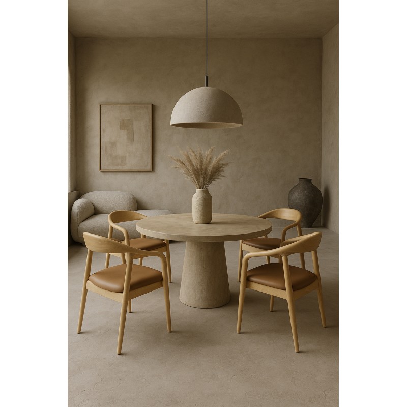 The armchair features meticulous finishing with a natural varnish that highlights the wood texture. The brown faux leather adds a warm and elegant touch while ensuring good resistance to daily use. Every detail reflects a design meant to last over time.