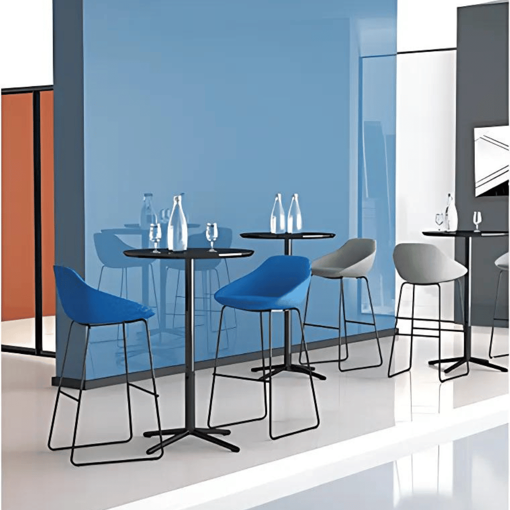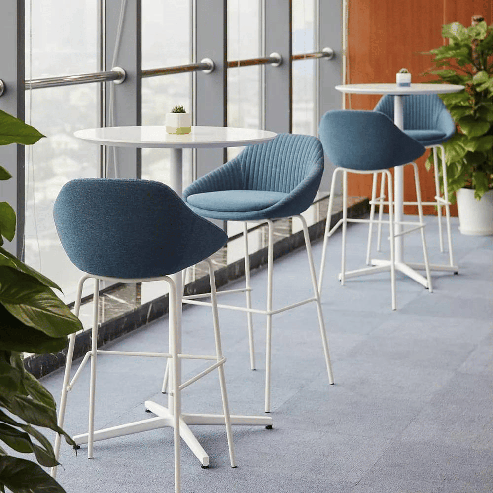 The Sys fabric high bar stool combines elegance and comfort for modern professional spaces.