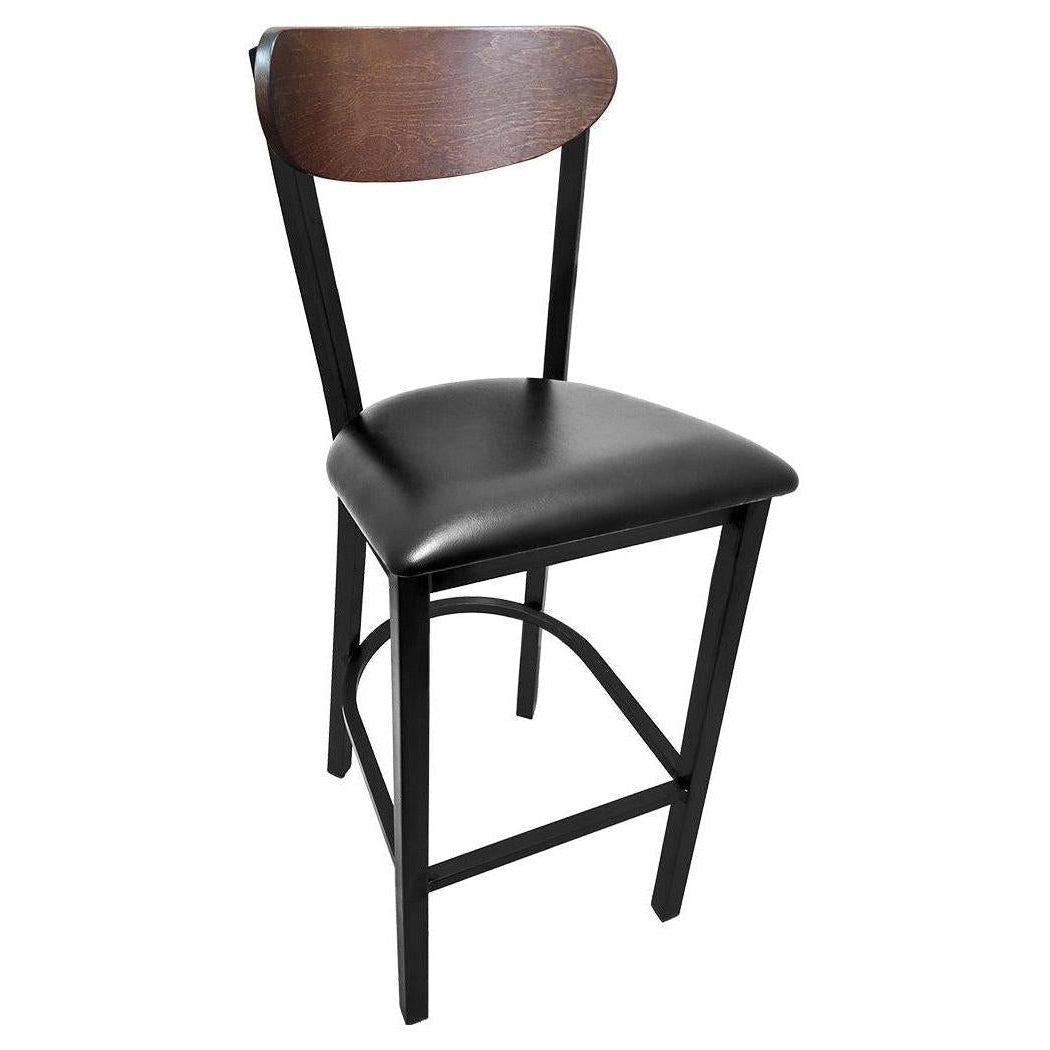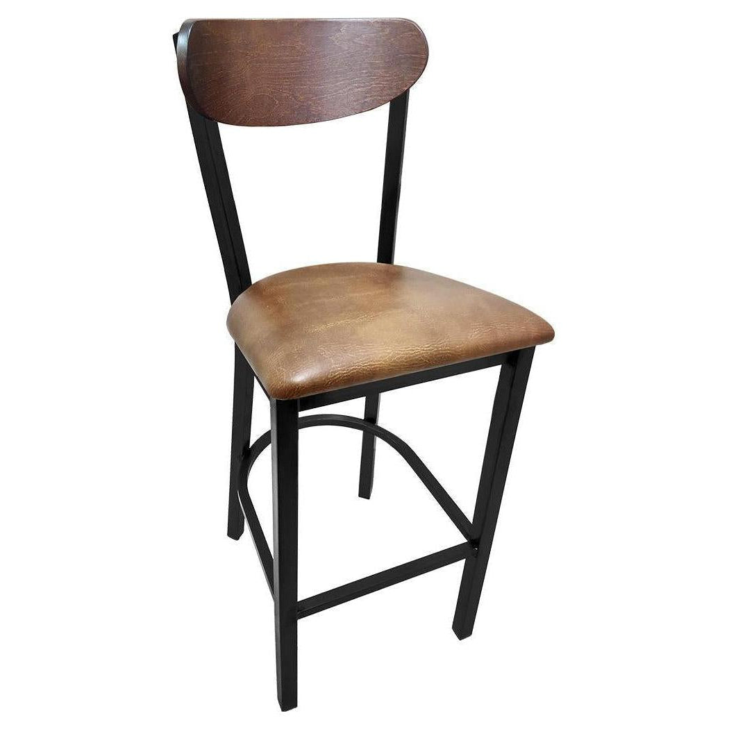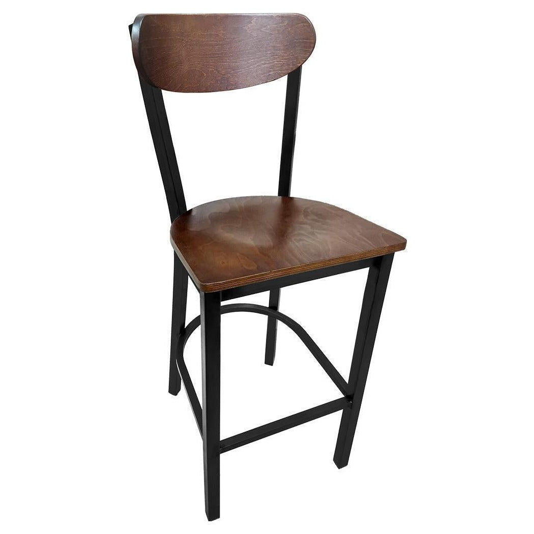 Be the first to review “Bar stool AMARA in wood with backrest and black metal frame”