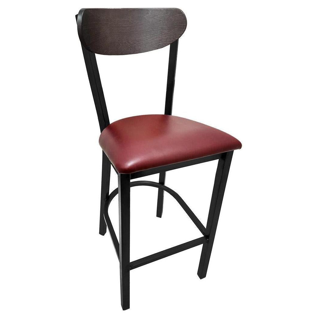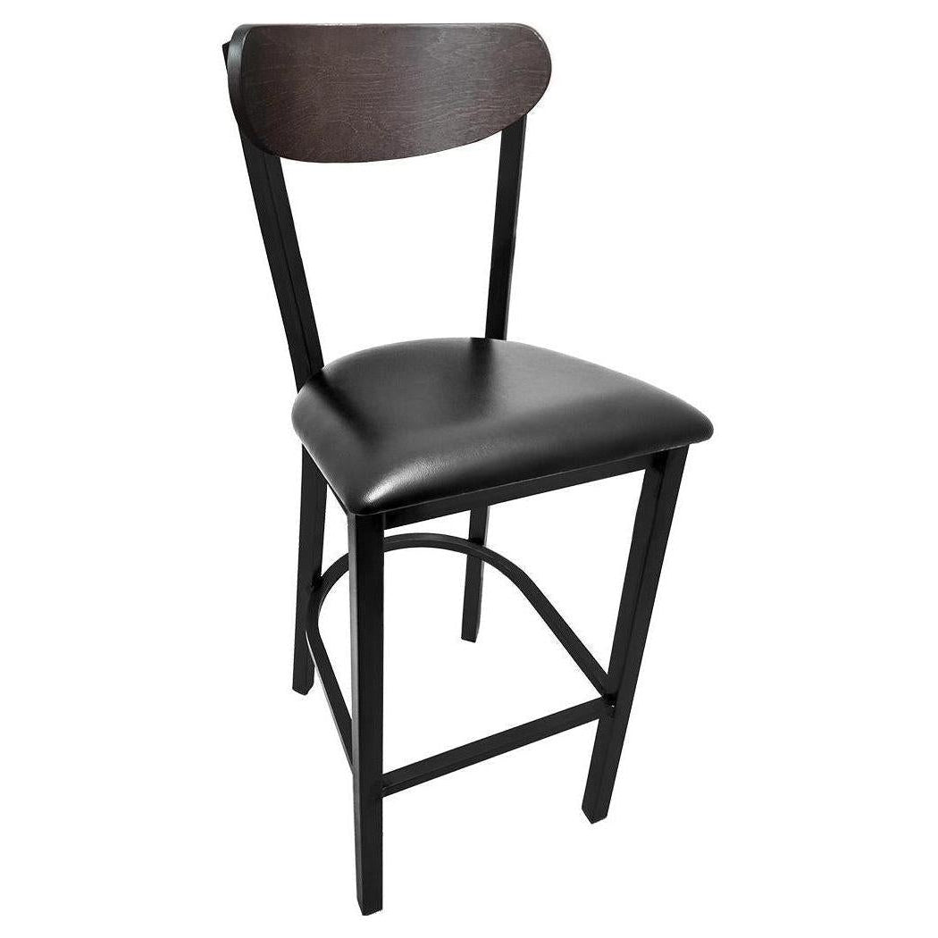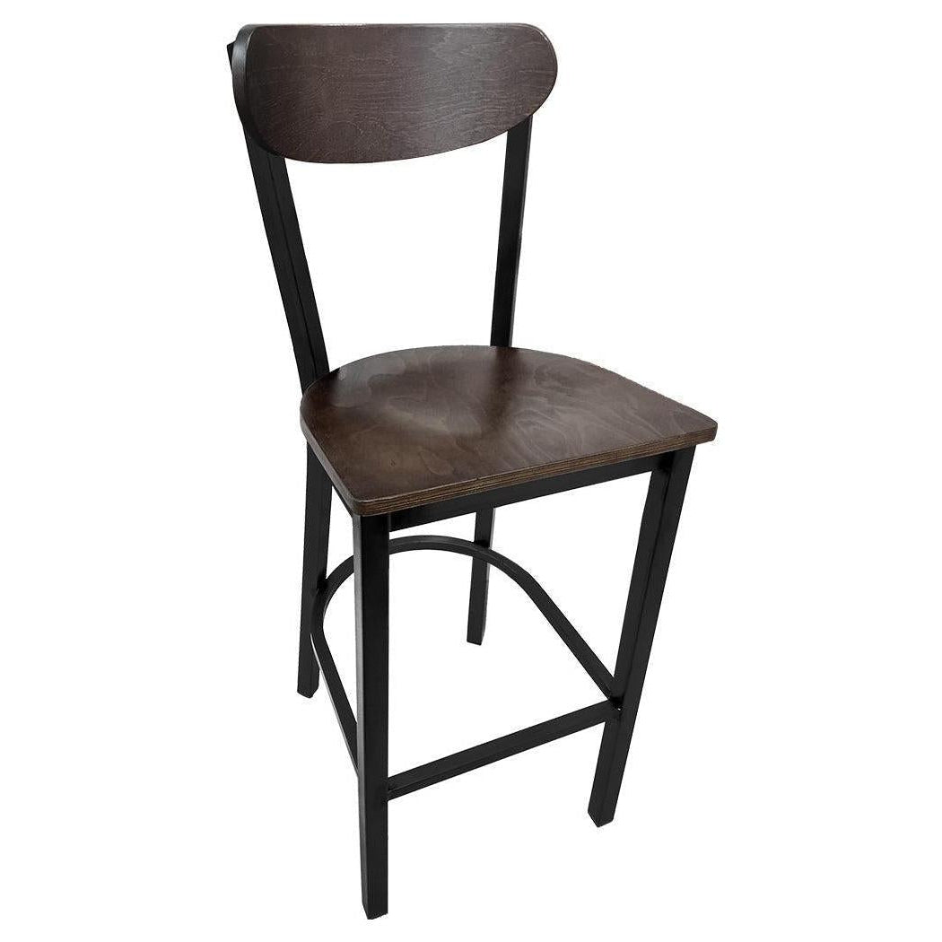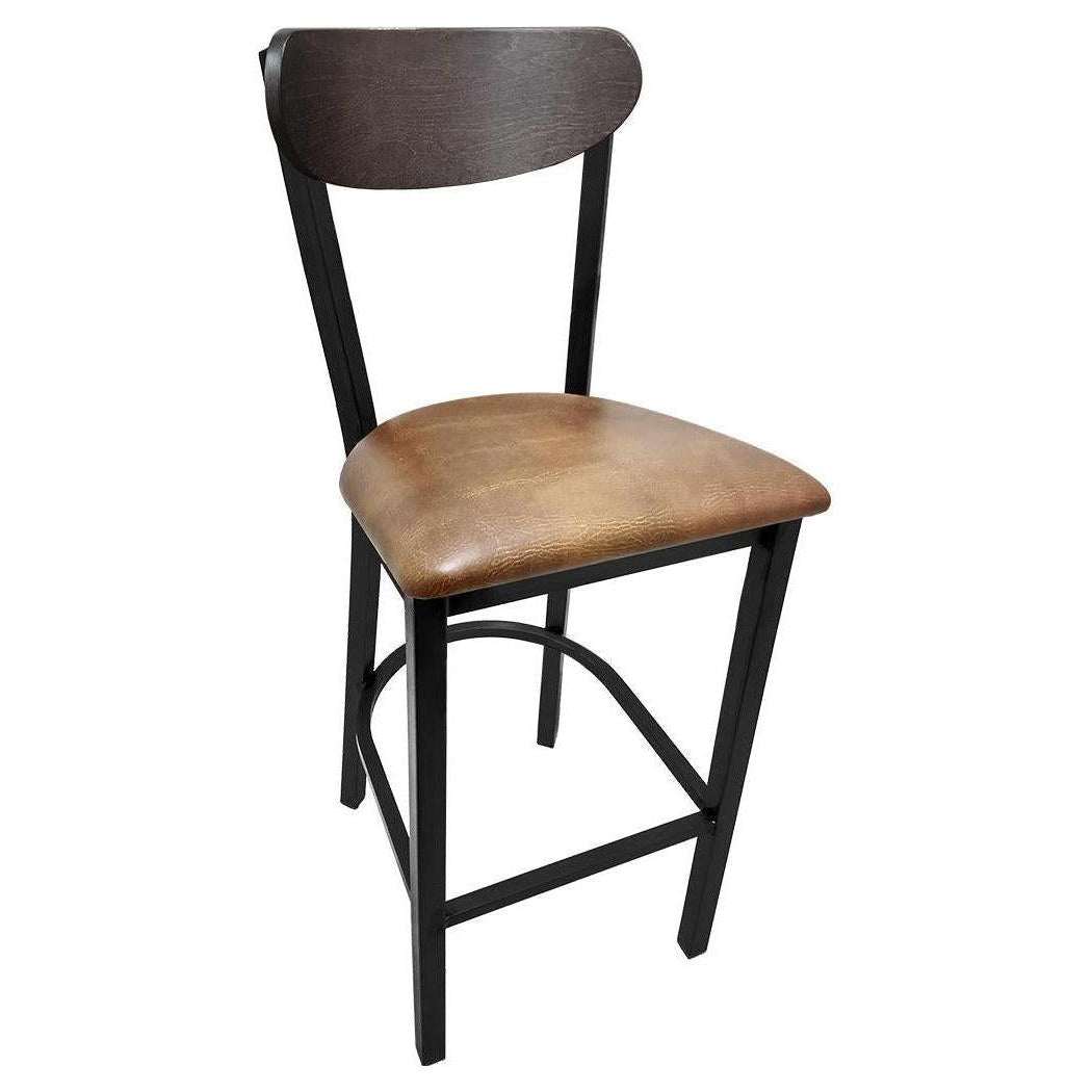 Be the first to review “Bar stool AMARA in wood with backrest and black metal frame”