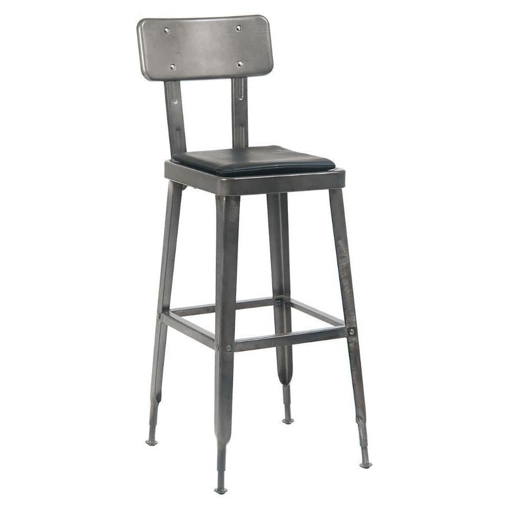 This bar stool is designed for commercial use, ideal for restaurants looking to adopt an industrial and rustic style.