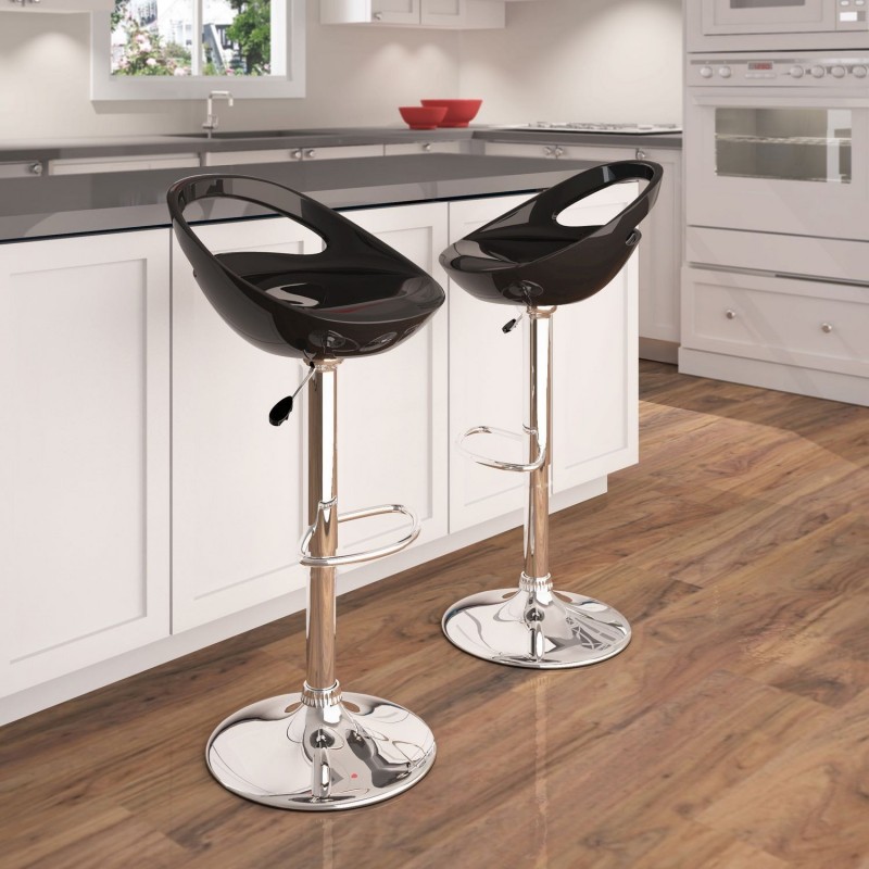 The black injected ABS shell ensures optimal robustness while maintaining appreciable lightness for professional furniture. The base, composed of a chrome column and base, ensures stability and durability. An integrated footrest enhances comfort during prolonged use. All selected materials resist the demands of intensive professional use.