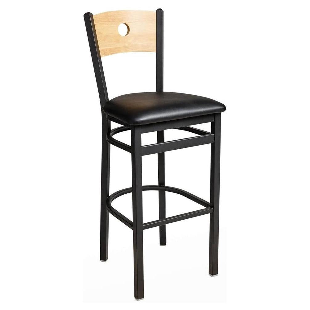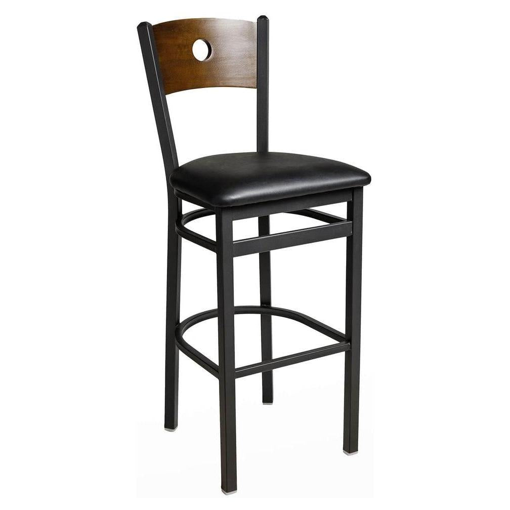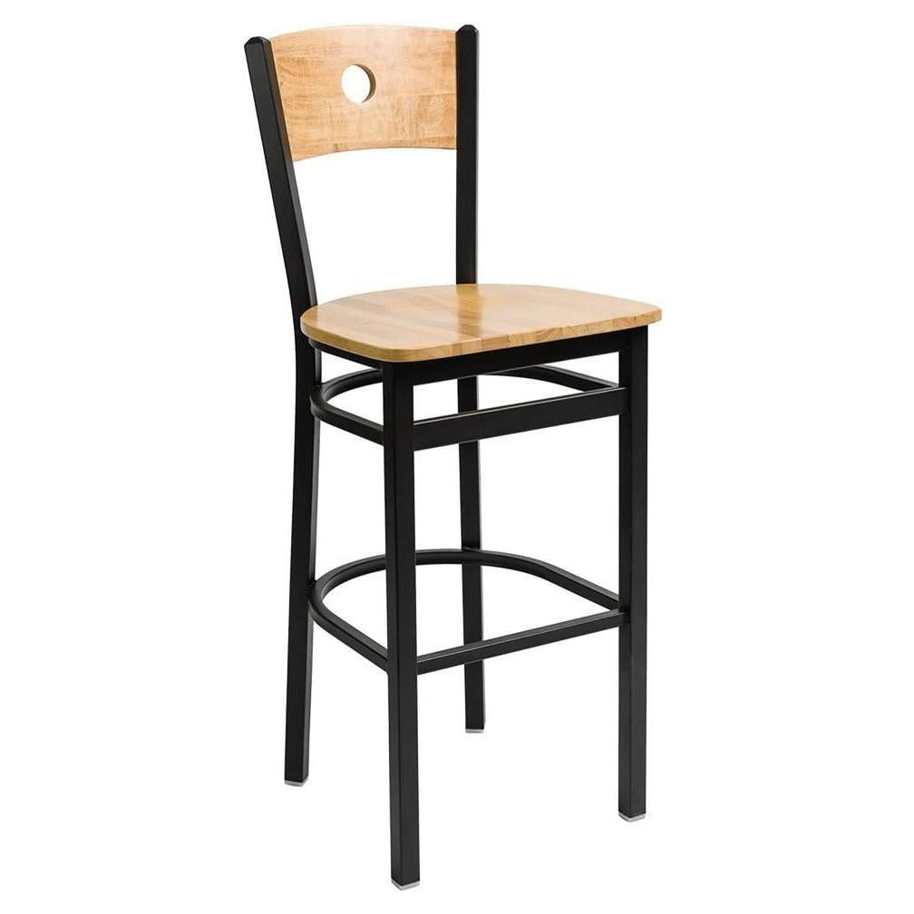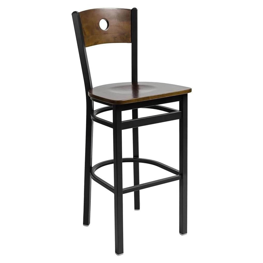 This bar stool combines a classic design with a modern touch,