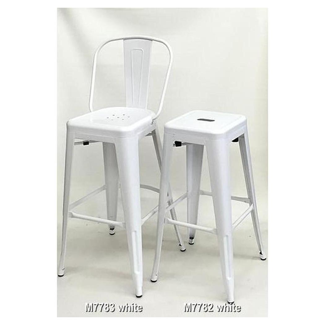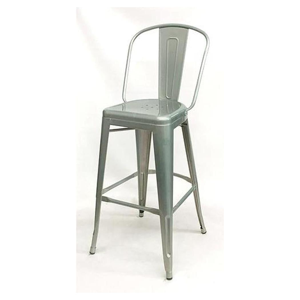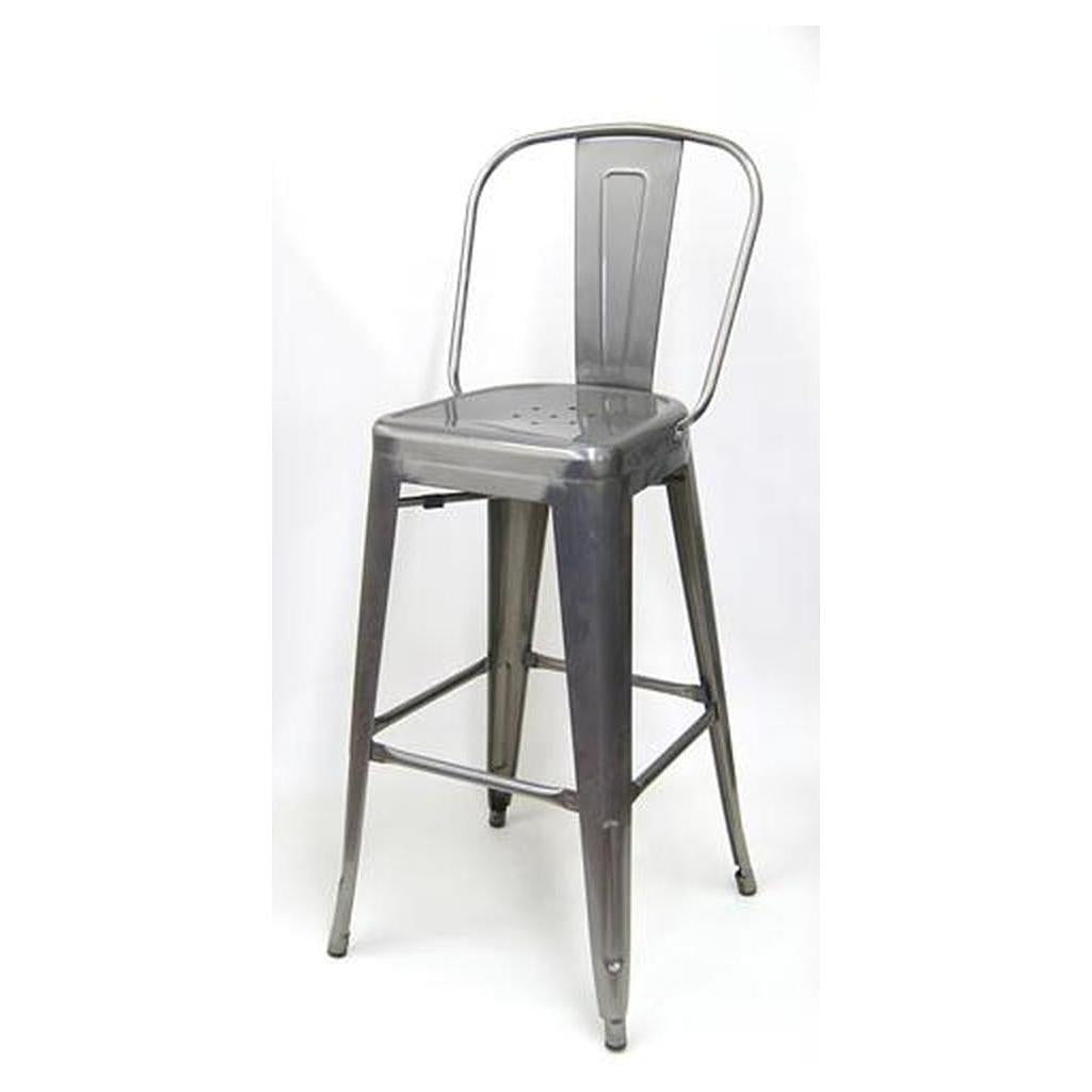 This metal bar stool with a backrest is designed for professional use,
