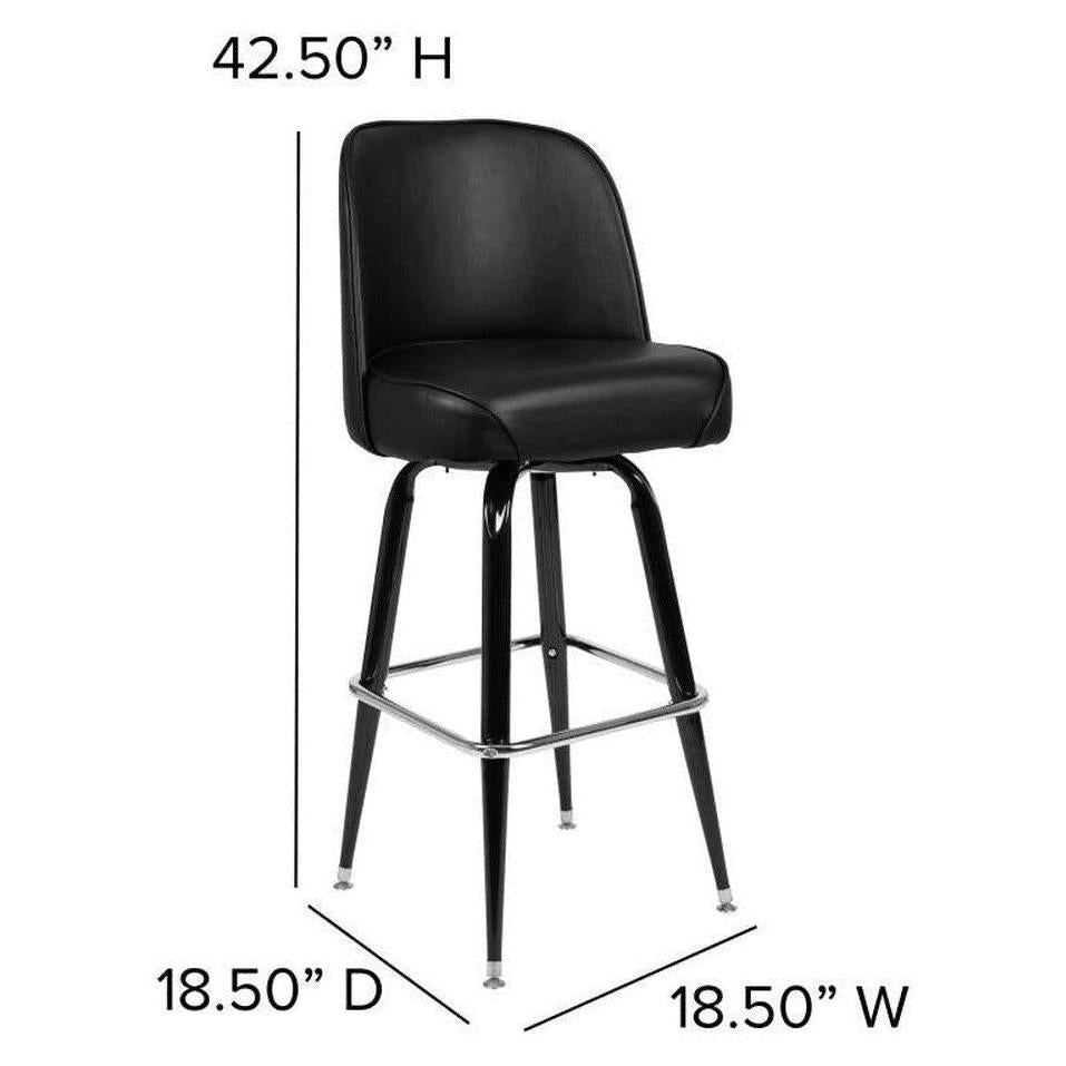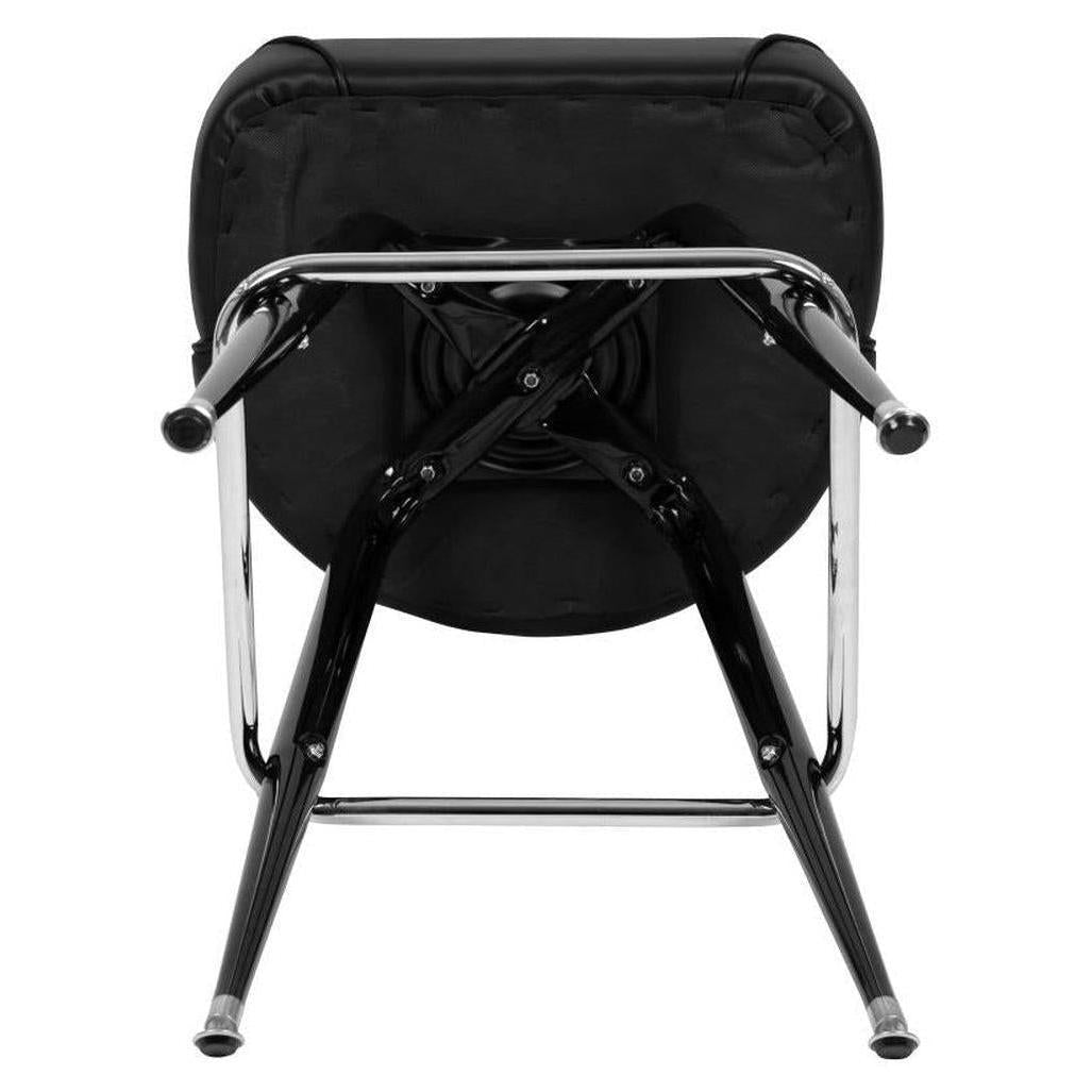 – Structure / materials: Made with an 18-gauge steel frame, black finish, and a vinyl seat padded with fire-retardant foam.