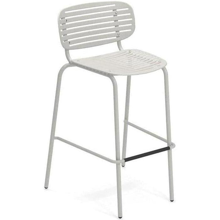 This bar stool is designed for indoor and outdoor use, offering a practical and aesthetic solution for dining or relaxation spaces,