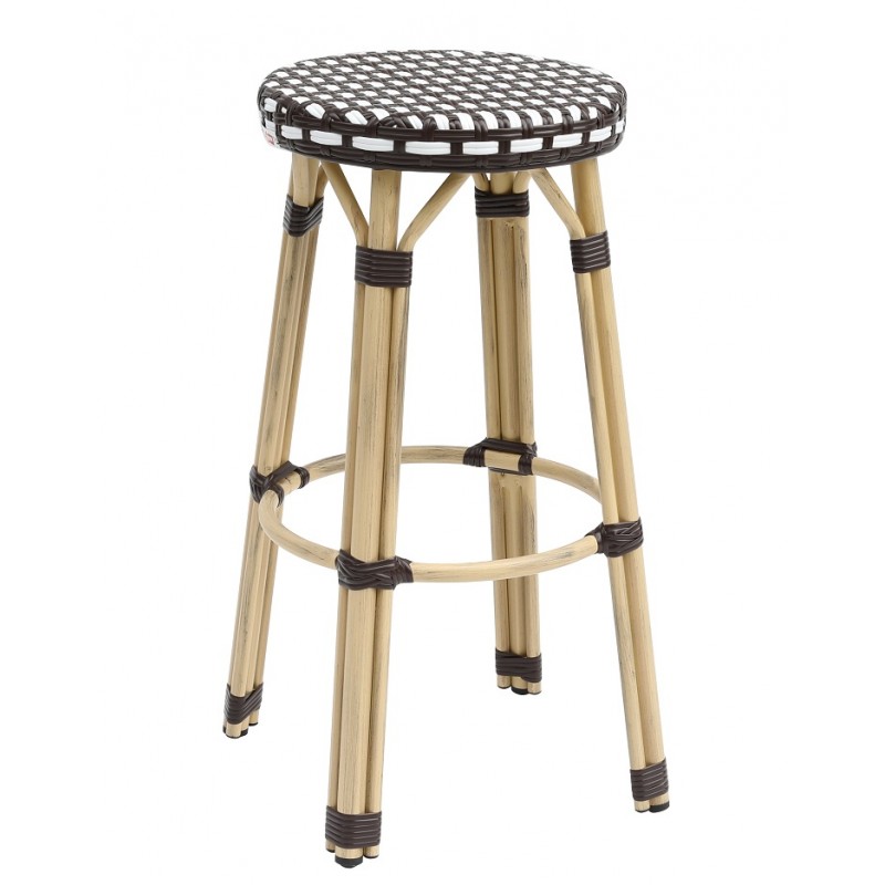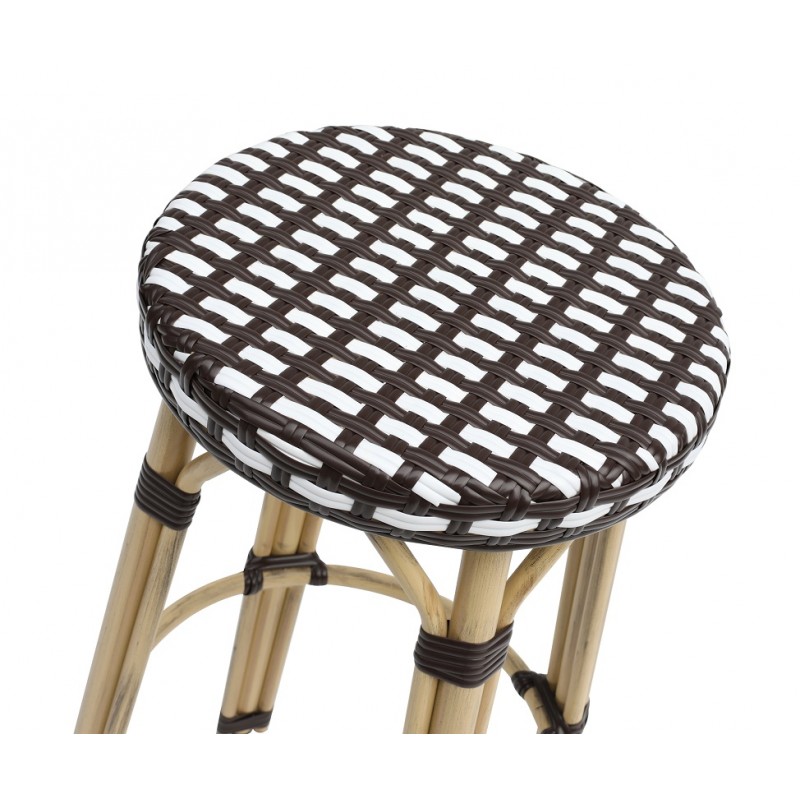 The structure is based on a reinforced aluminum frame with a thickness of 1.5 mm, ensuring lightness and robustness. The synthetic rattan seat provides a natural touch while being resistant to daily use. The white and brown finishes bring a simple and warm aesthetic.