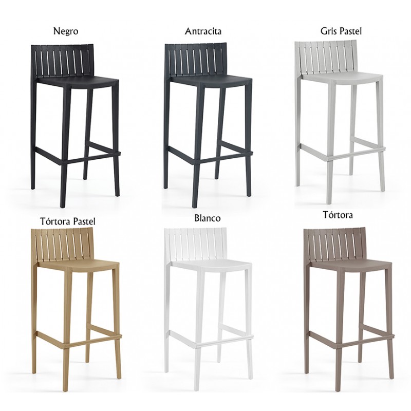 Made of white injected polypropylene, this stool is reinforced with fiberglass for increased strength. The UV-resistant treatment protects the material, ensuring durability against outdoor exposure. Its lightweight structure simplifies handling and transport.