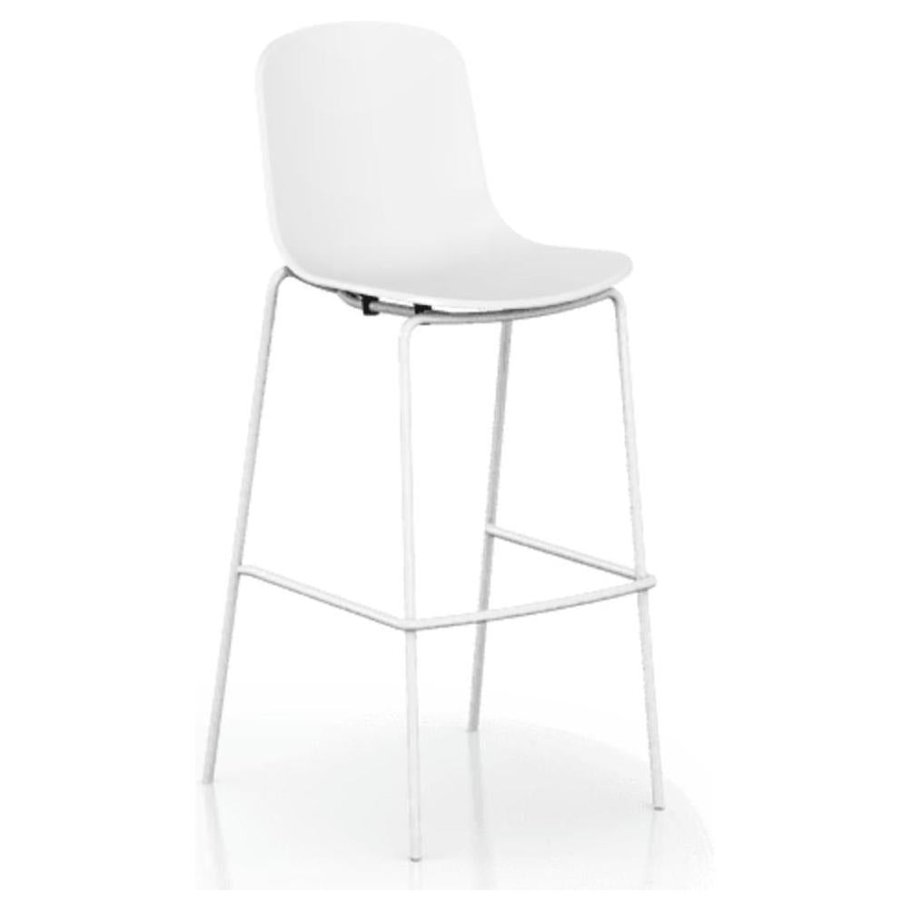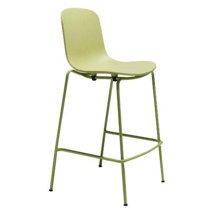 This closed shell bar stool is designed for professional use, ideal for dining establishments looking for a modern aesthetic.