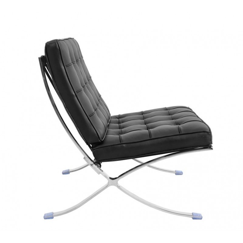 Barcelona Style Contemporary Chaise (T) in Stainless Steel and Faux Leather (Black)