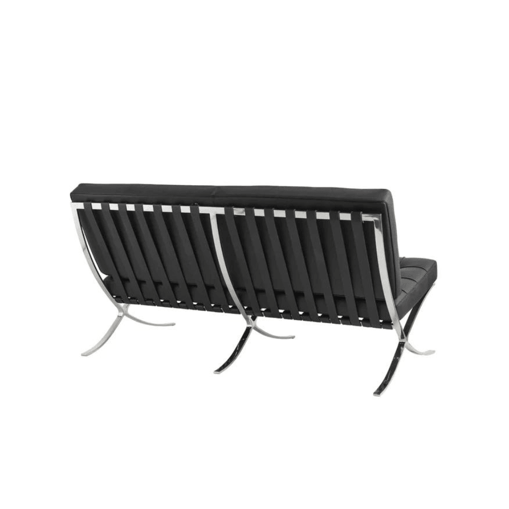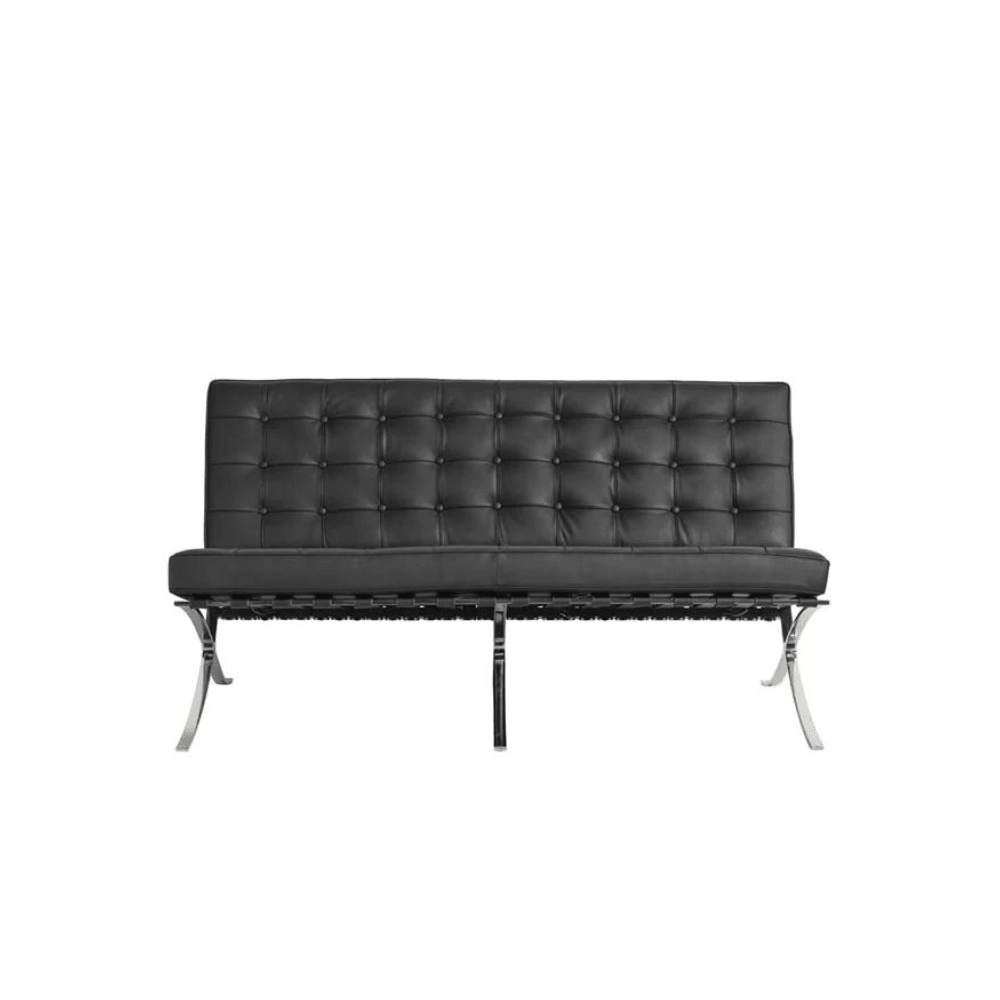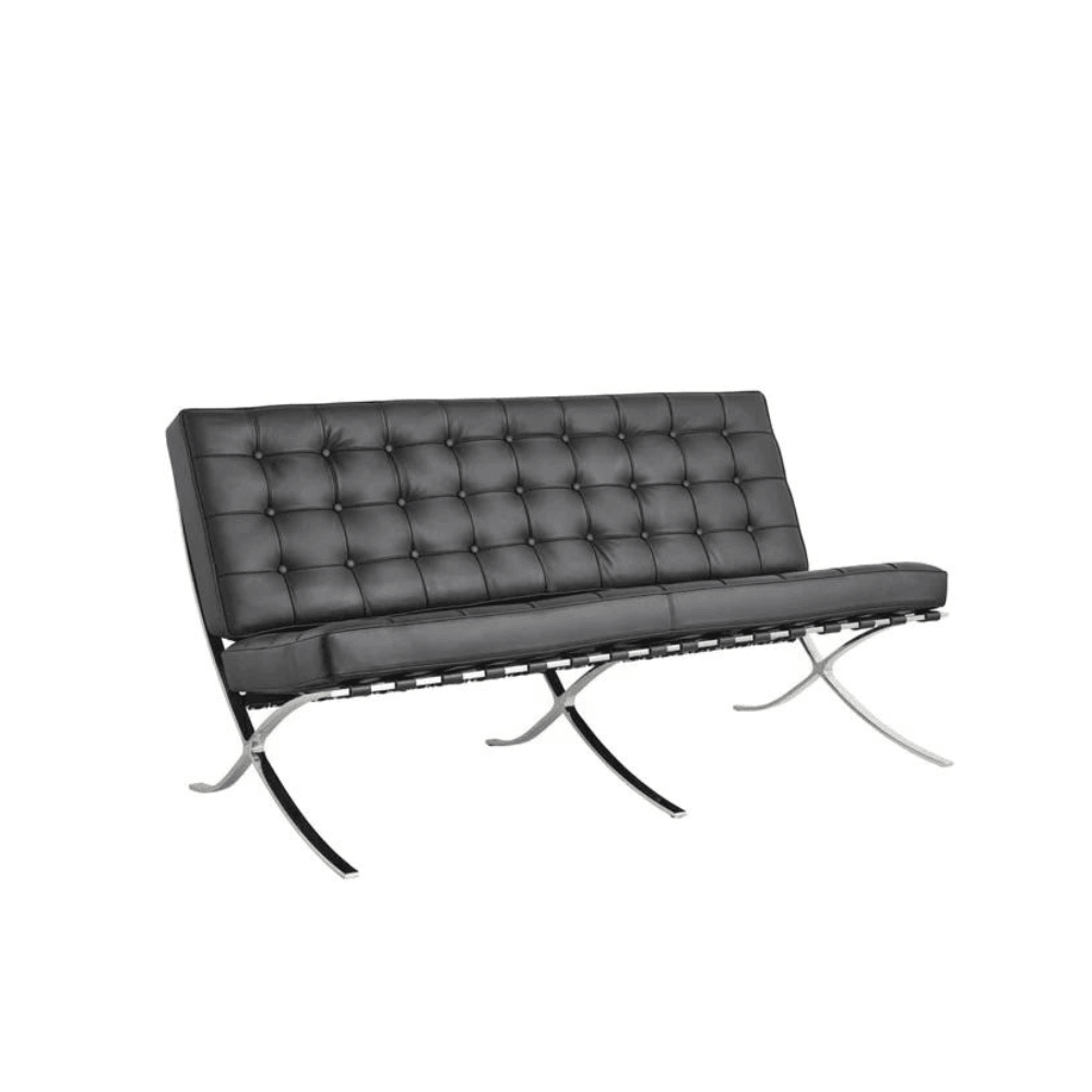 The Barcelona two-seater leather lounge sofa is an iconic piece that combines modern design and comfort, ideal for professional spaces.