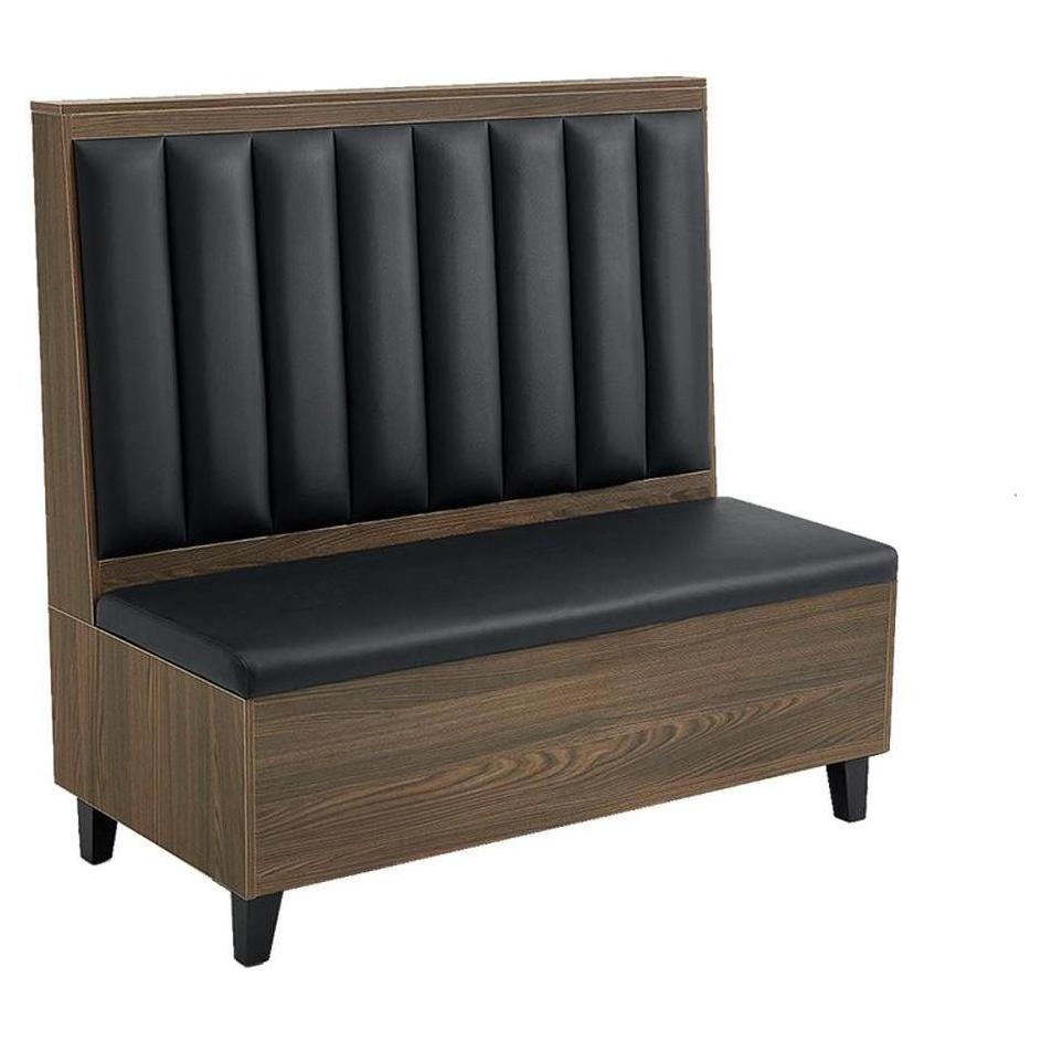 Black restaurant banquettes with 8 channels, walnut veneer, and padded seat