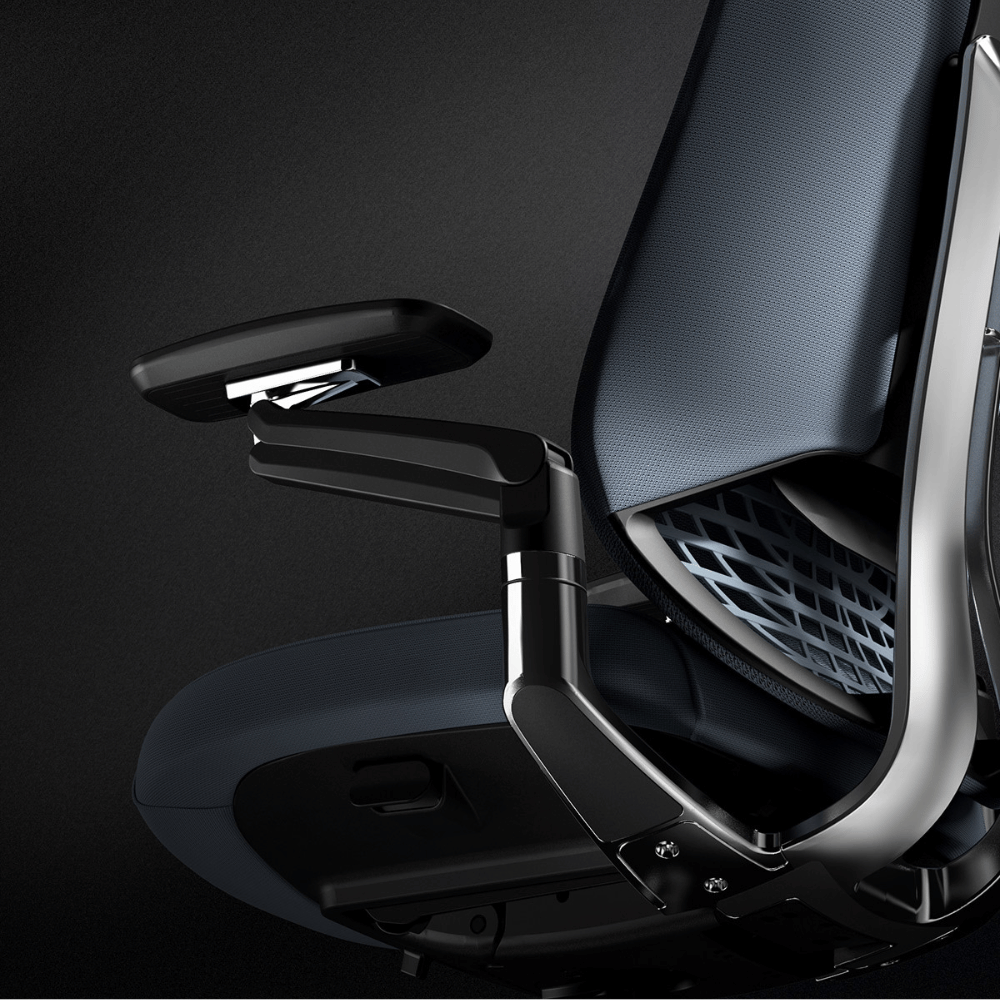 – Dual-axis rotating armrests, adjustable in height and depth