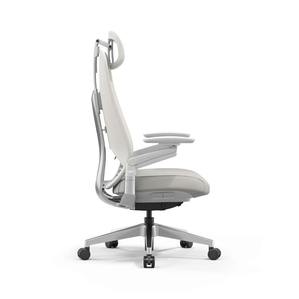The chair is equipped with a lightweight aluminum structure, ensuring both strength and aesthetics. Its TPE mesh covering provides enveloping support while allowing optimal air circulation. The multi-dimensional rotating armrests are made of polished aluminum, offering a neat finish.