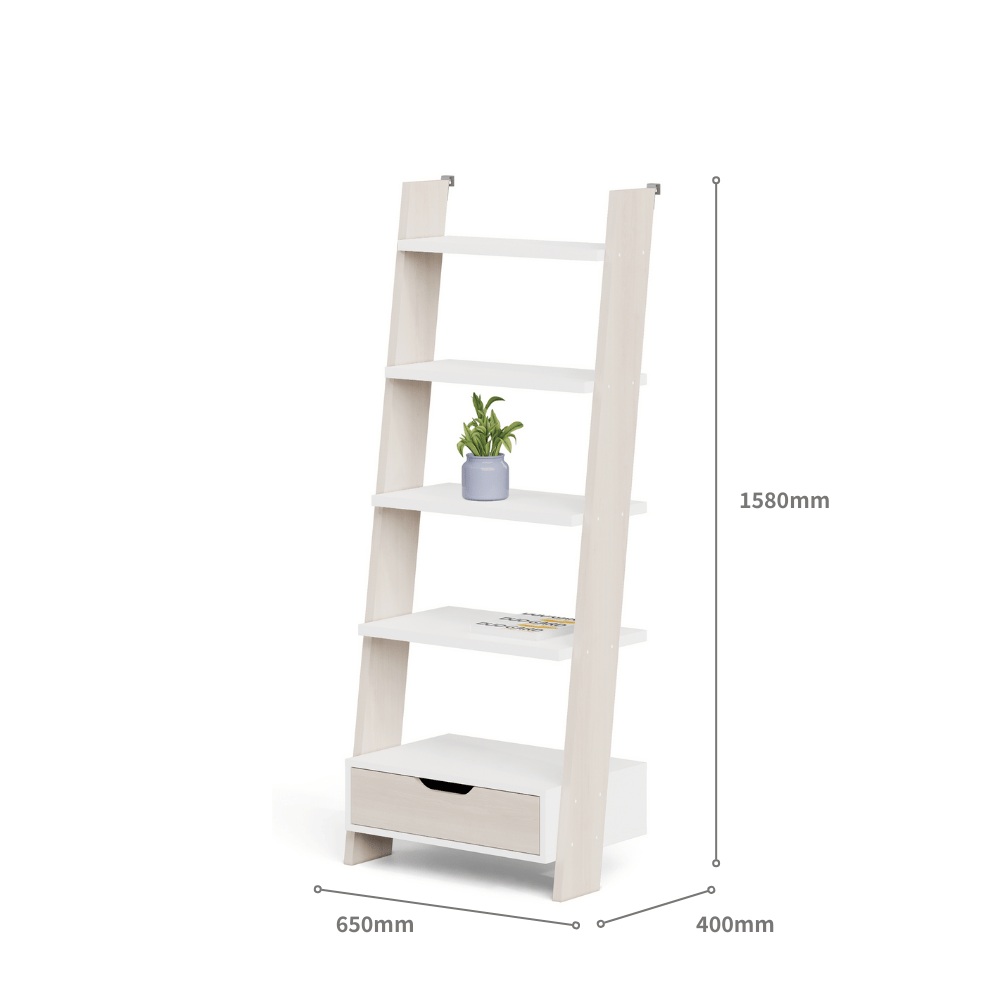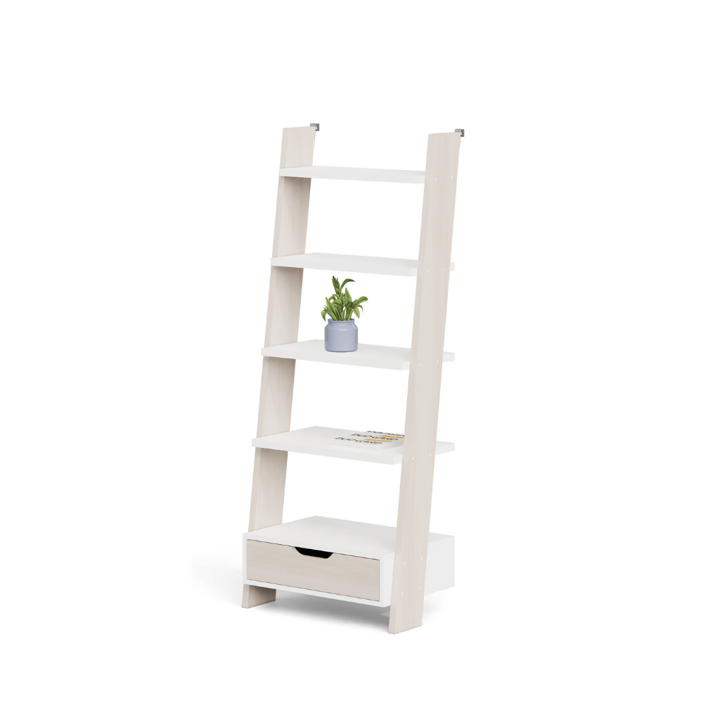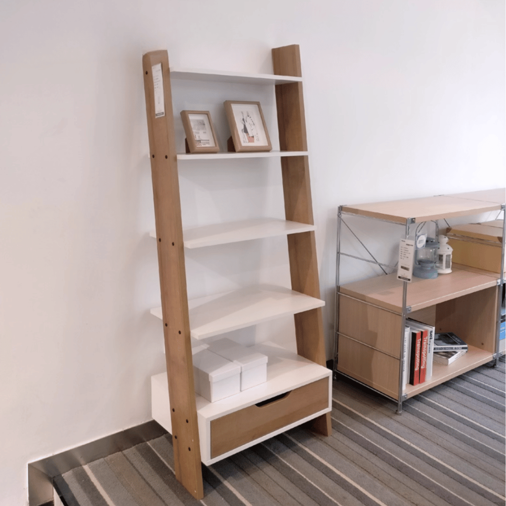 **Sierreu–B Wooden Bookcase with Ladder Structure and Drawers**