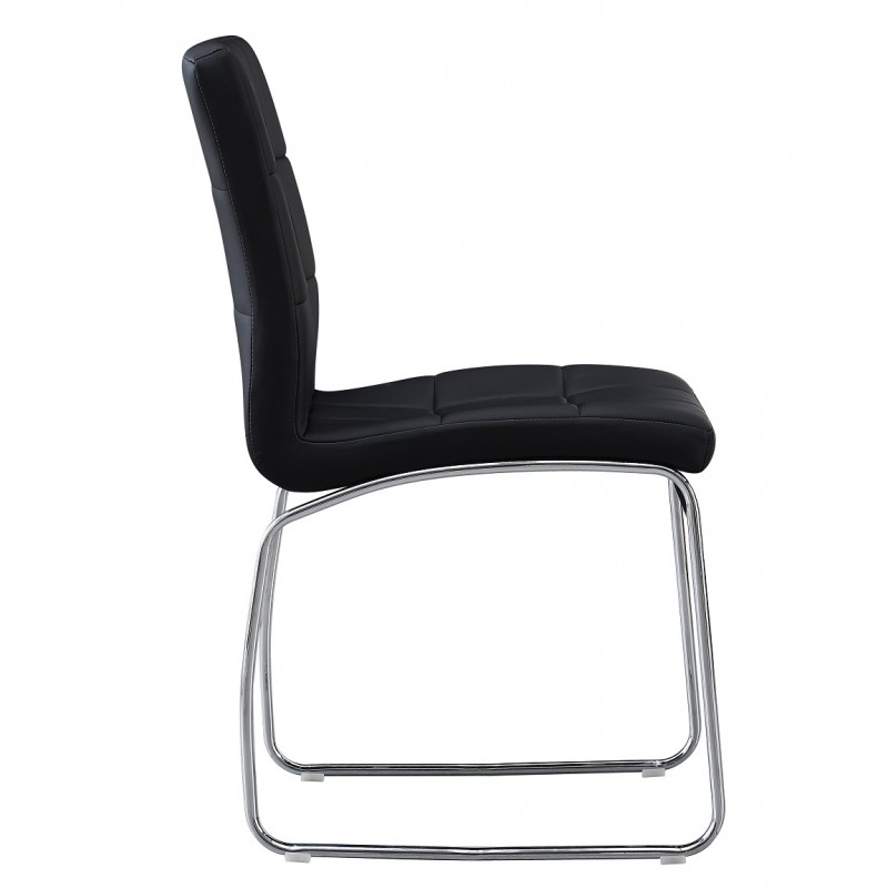 The structure is based on a chrome tubular fixed base, ensuring stability and robustness. The diameter of the metal tube is 16 mm, providing good long-term resistance. The seat and backrest are covered in black faux leather, easy to maintain and pleasant to the touch.