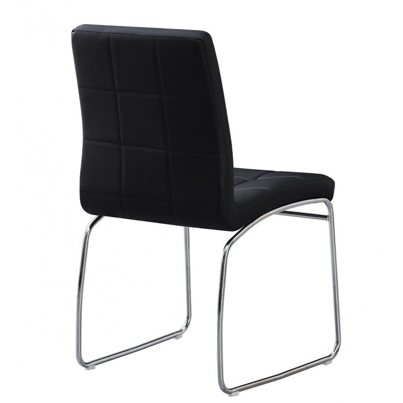 The chrome plating of the structure gives a shiny and corrosion-resistant finish. The black faux leather has a smooth surface, easy to clean, and suitable for frequent use. The combination ensures a durable chair, combining aesthetics and practicality.