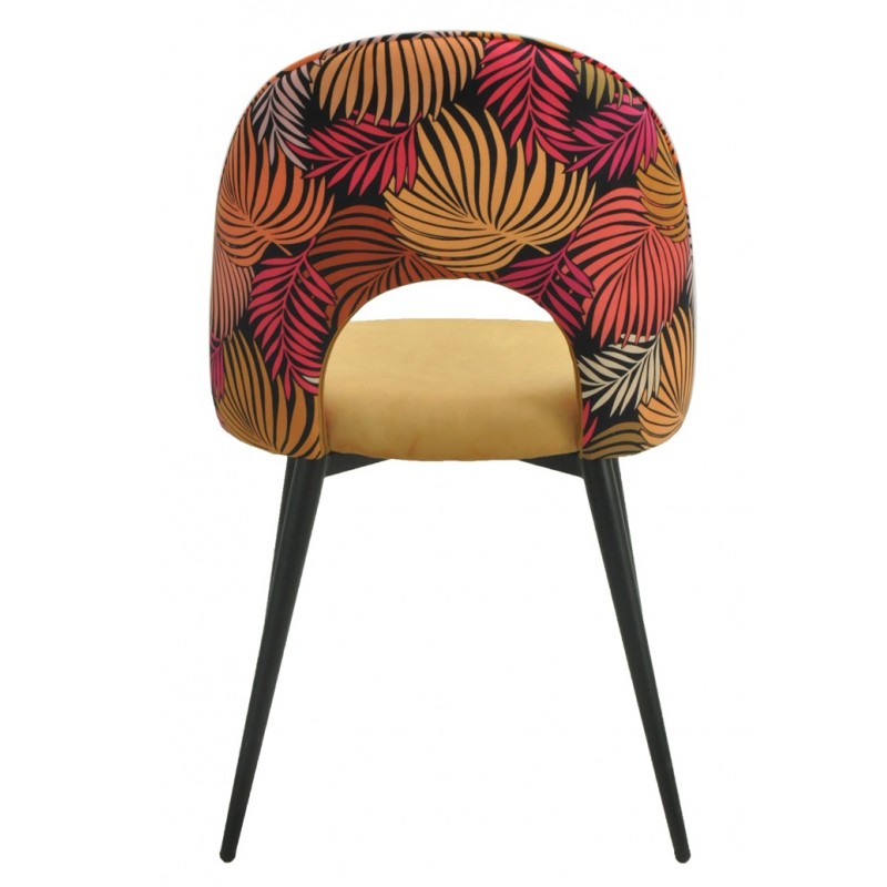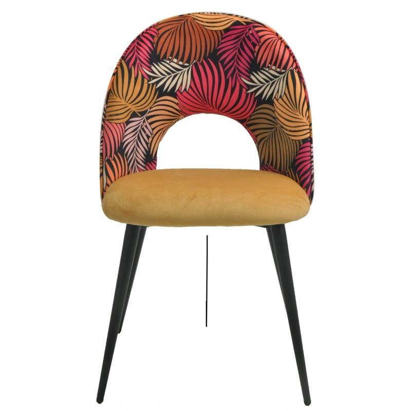 The metal structure ensures daily robustness and stability. The yellow velvet covering adds a warm and comfortable touch. The Vejleal type backrest provides ergonomic support suitable for extended use.