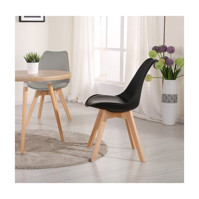 The meticulous finishes highlight the natural wood of the legs, sanded and protected for better longevity. The black polypropylene has a smooth surface resistant to scratches. The cushion provides additional comfort while remaining easy to clean. This chair combines durability and discreet elegance.