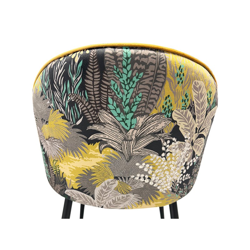The metal structure ensures lasting robustness and good stability. The yellow velvet covering offers pleasant comfort while adding a warm note. The backrest features a palm tree motif that brings an original and contemporary decorative touch.