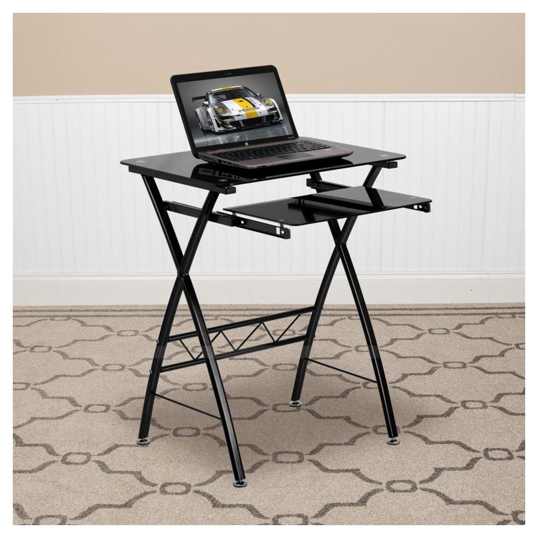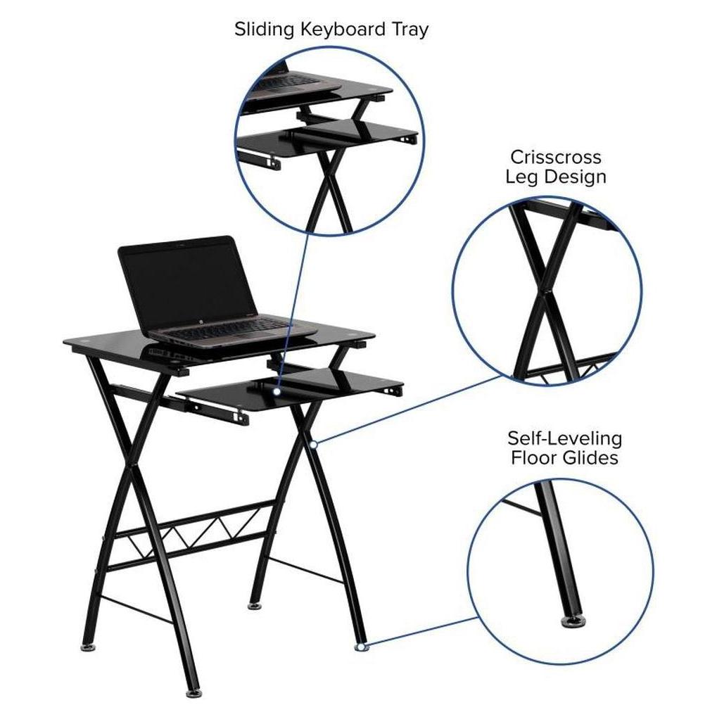 Computer desk CHUKI in black tempered glass with sliding keyboard tray