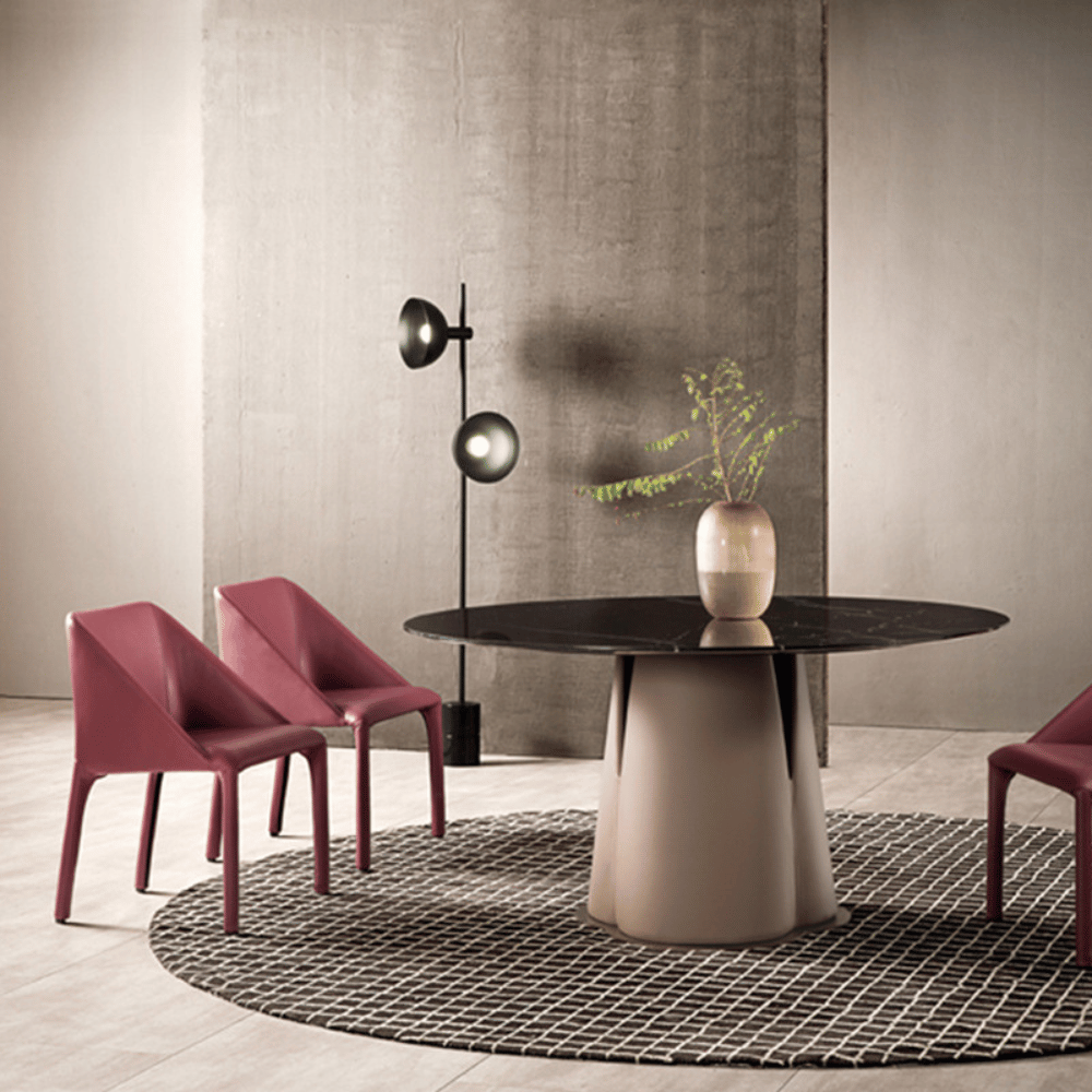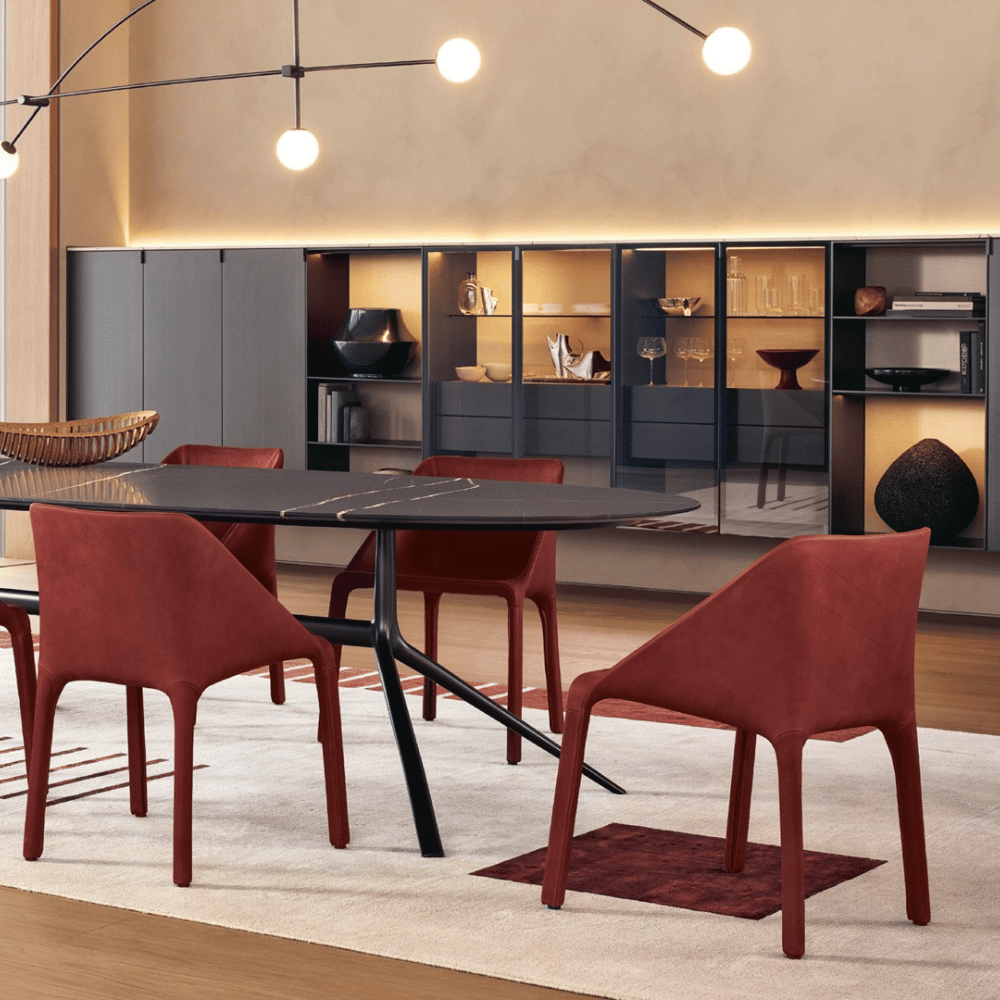 The Manta chair is supported by a steel structure, ensuring optimal stability and durability. Its polyurethane foam padding provides lasting comfort while retaining its shape over time. The full leather finish ensures an elegant look and easy maintenance.