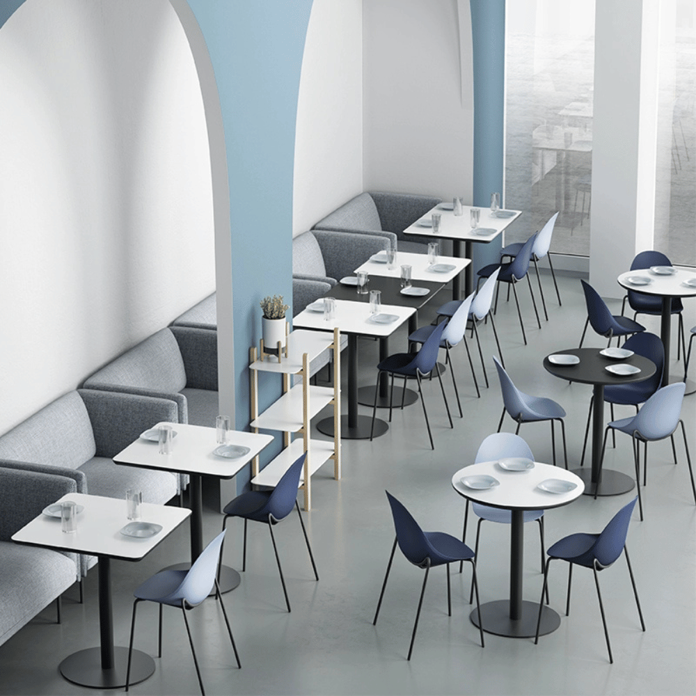 Ideal for restaurants, cafes, lounges, and offices, this dining table provides a friendly setting for meals and conversations. Its contemporary design seamlessly integrates into various environments, promoting a welcoming and functional atmosphere. It is perfect for sharing moments or informal meetings.