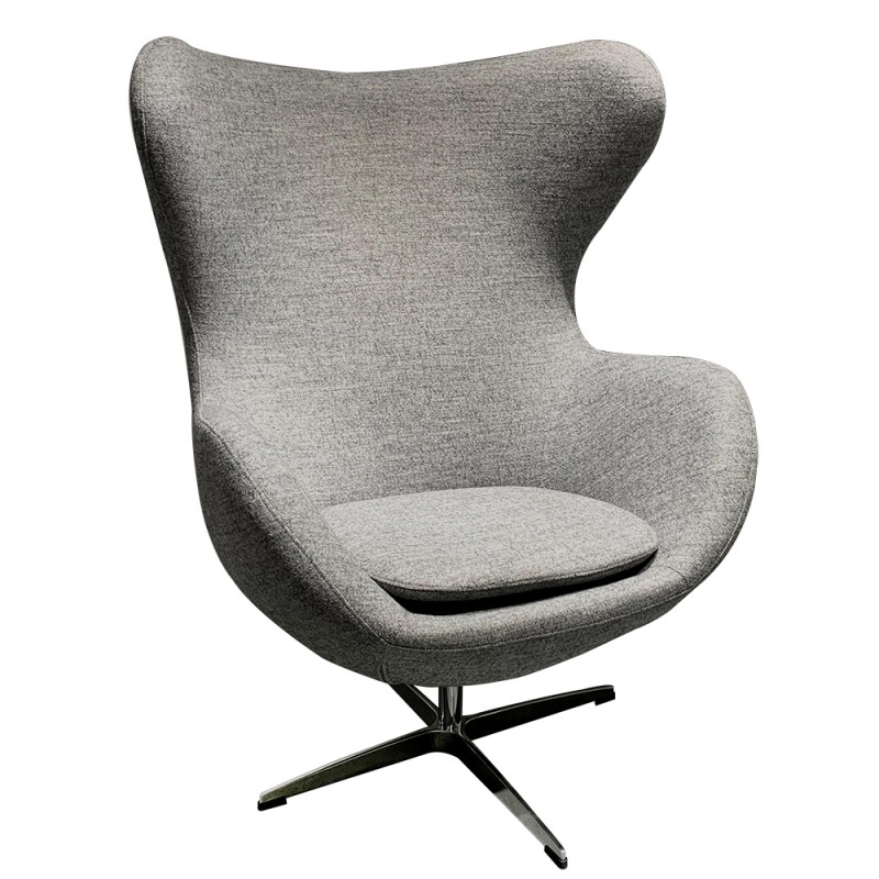 The gray cashmere fabric adds a touch of softness and refinement, while the chrome finish highlights the modern character of the armchair.