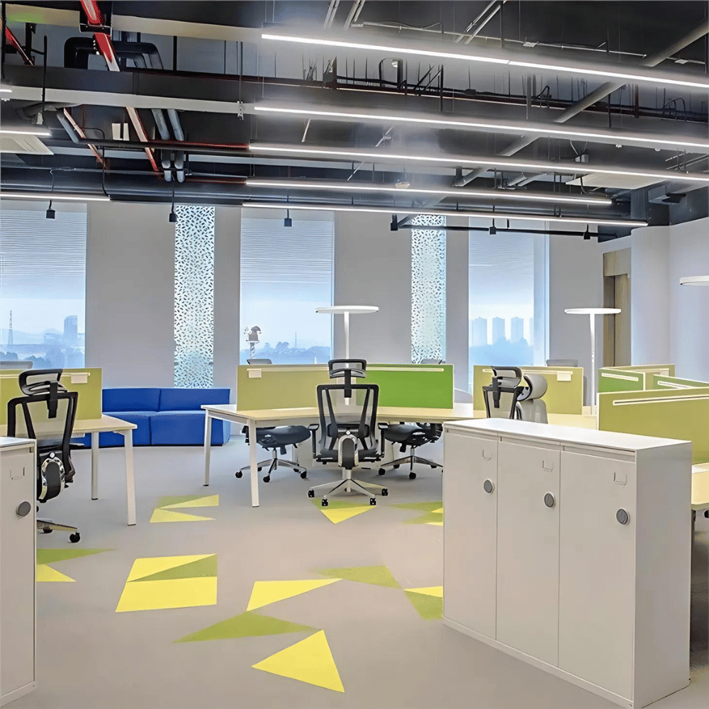 Designed for offices, this workstation fits perfectly in environments such as coworking spaces, meeting rooms, and open offices. It promotes collaboration and interaction among teams. Its modularity allows easy adaptation to users’ specific needs.
