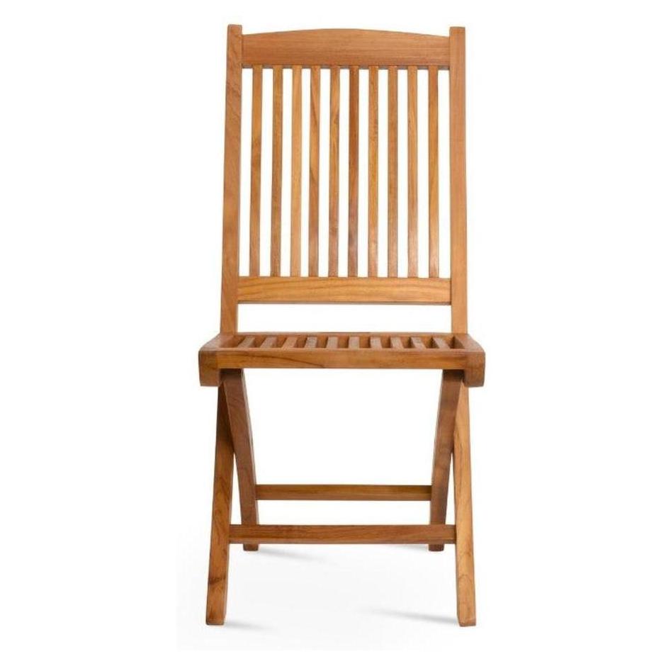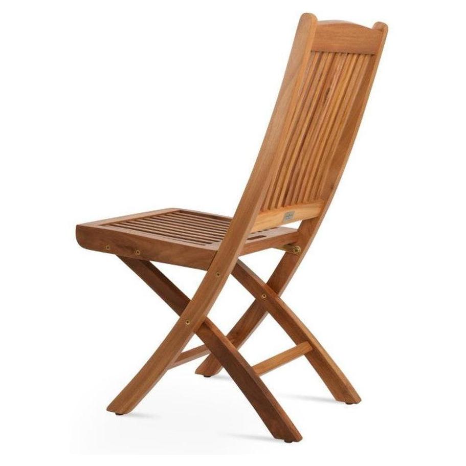 This folding teak chair is designed for outdoor use, combining modern aesthetics and functionality,