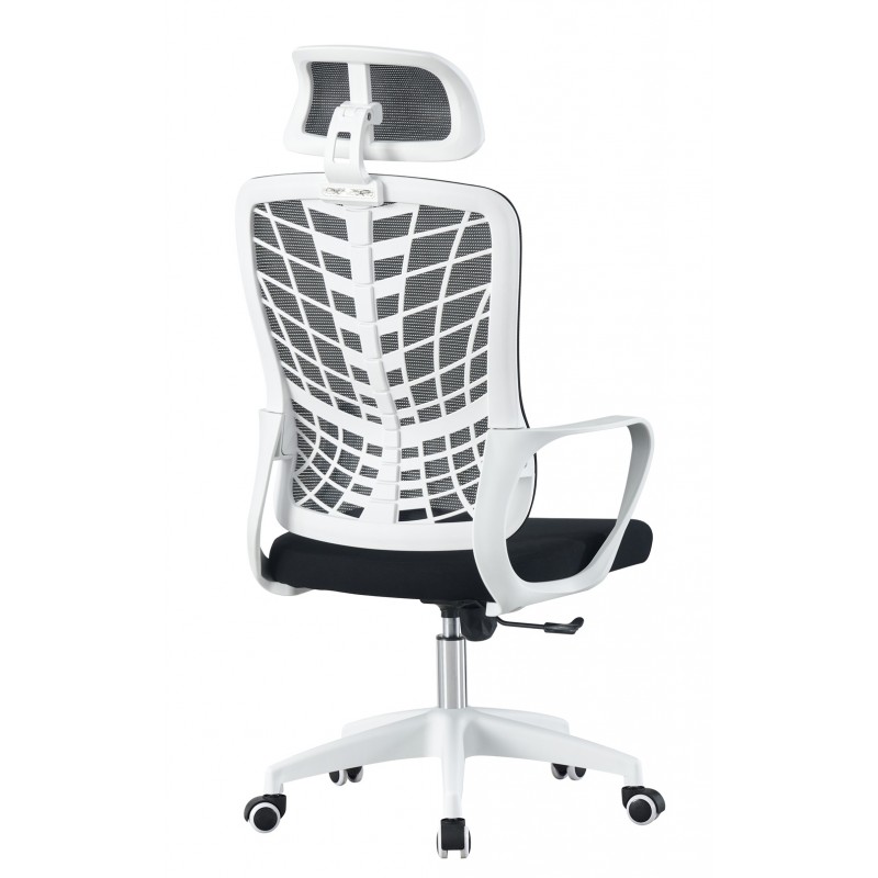 The meticulous finish of this office chair reflects a particular focus on material quality and aesthetics. The contrast between the white frame and the translucent darkness of the backrest creates an elegant and contemporary visual balance. Each component is treated to ensure resistance to wear and easy maintenance, meeting the demands of professional environments. This chair combines robustness and design with real subtlety.