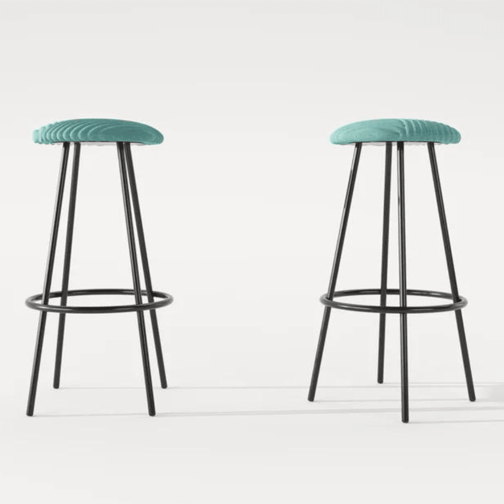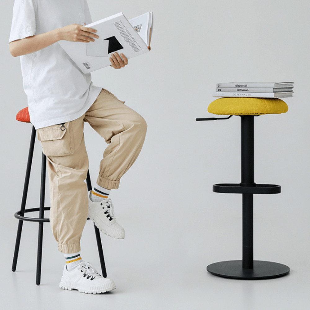 The stool’s structure is made of high-quality steel, ensuring strength and lightness. The seat consists of a 15mm thick plywood panel, covered with a 50mm high-density foam, providing optimal comfort. The fabric used is a quality imported textile, allowing for customization of colors.