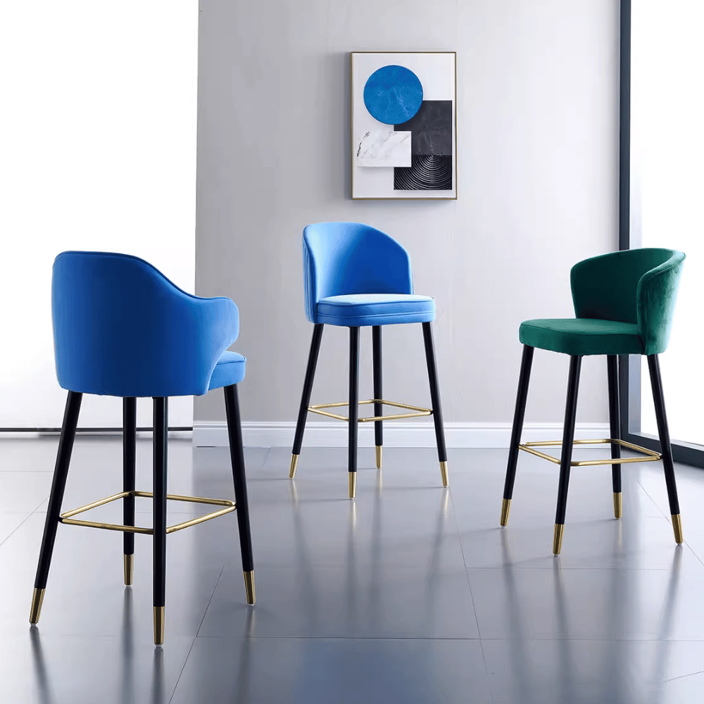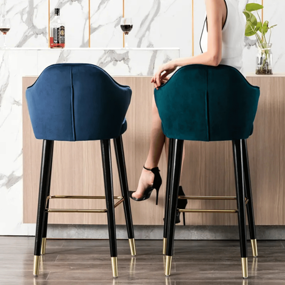 **Kalou High Chair in Wood and Velvet – Luxury Finish**