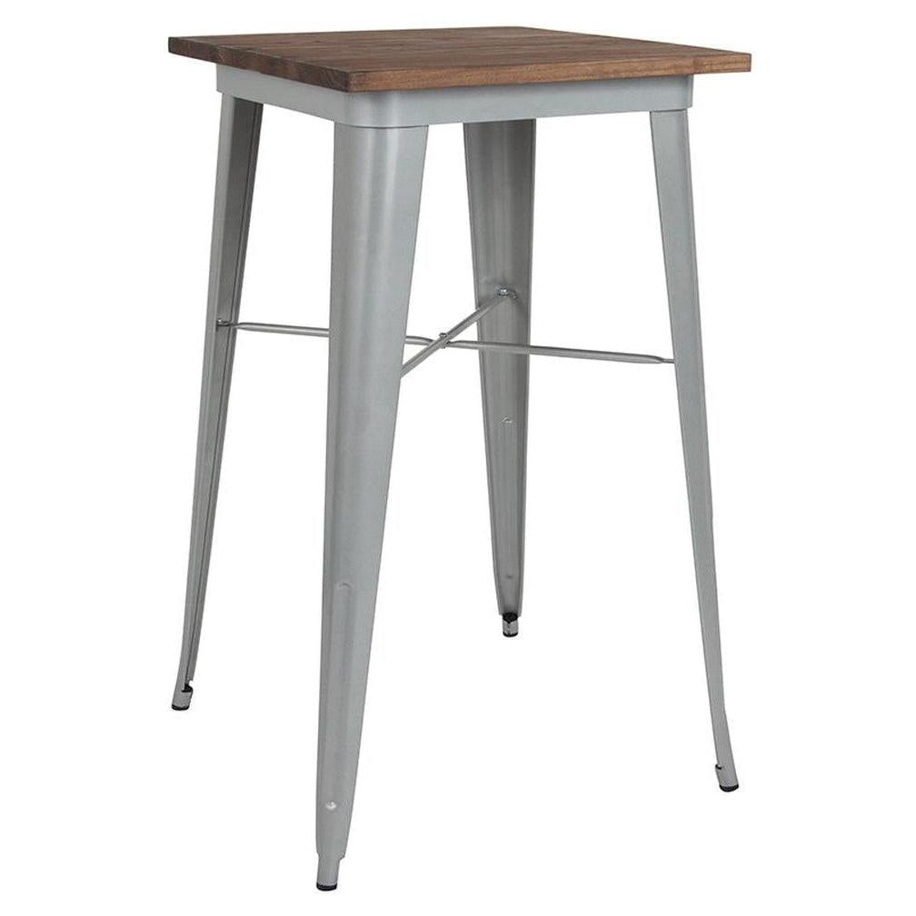This indoor bar height table is designed to seamlessly integrate into professional environments such as restaurants,