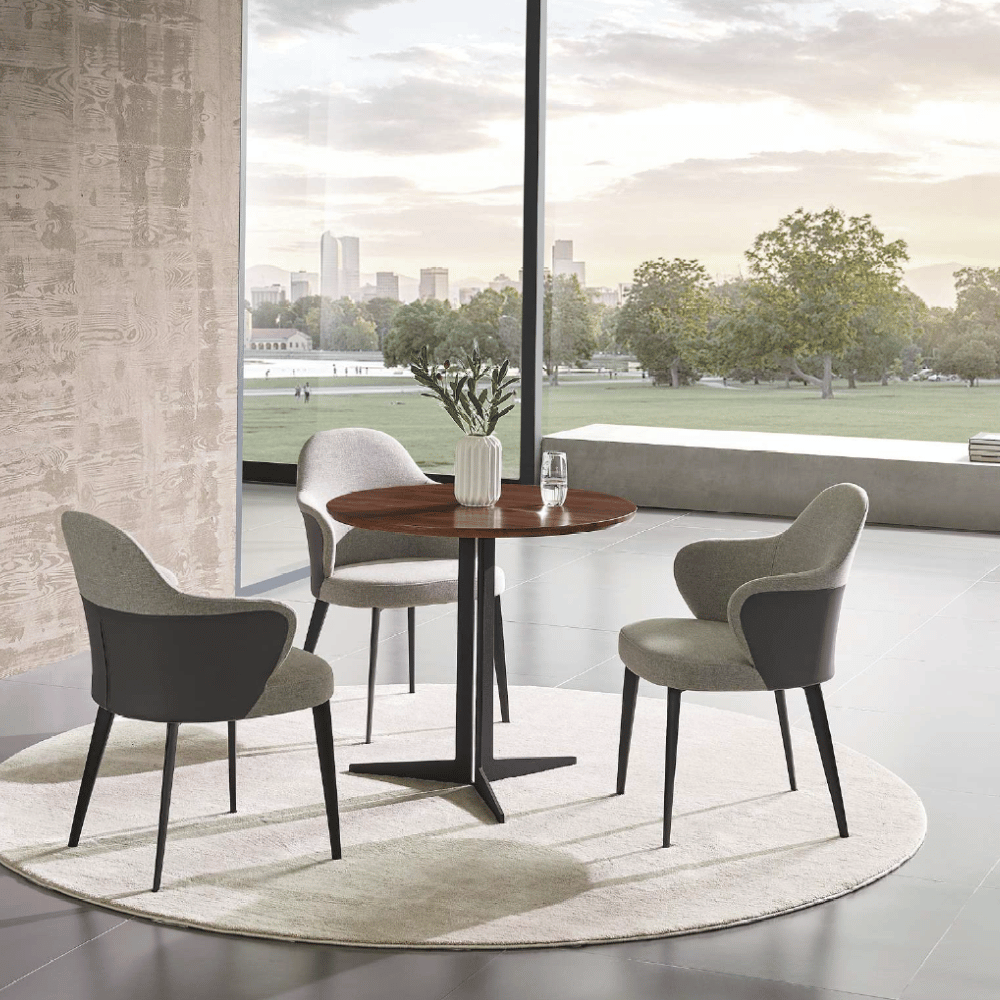 The Angel fabric lounge armchair stands out for its noble and elegant aesthetic. Its pleasant touch and meticulous design make it a comfortable and durable piece of furniture. Ideal for intensive use, it maintains its appearance and comfort over time.