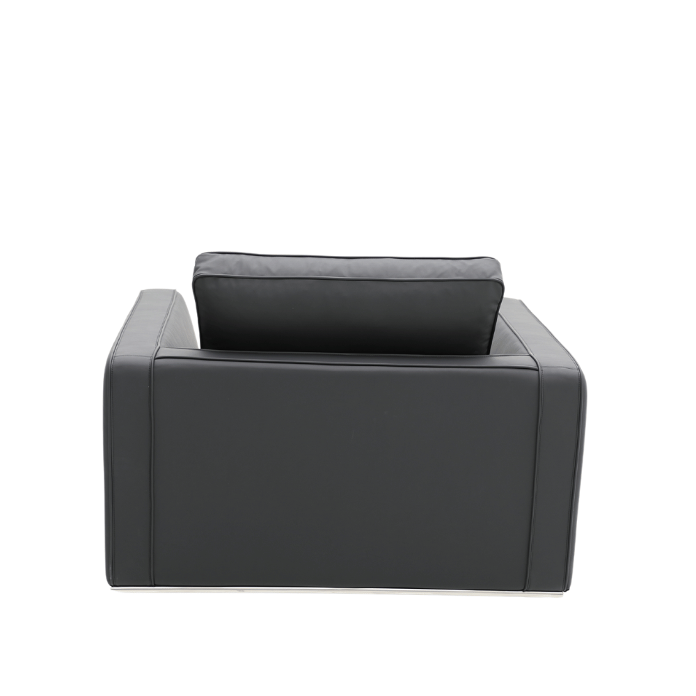 The leather of this armchair is chosen for its durability and aesthetics, offering a high-end finish. Its soft texture and resilience make it a long-lasting element, suitable for intensive use. This armchair maintains its appearance and comfort even after prolonged use.