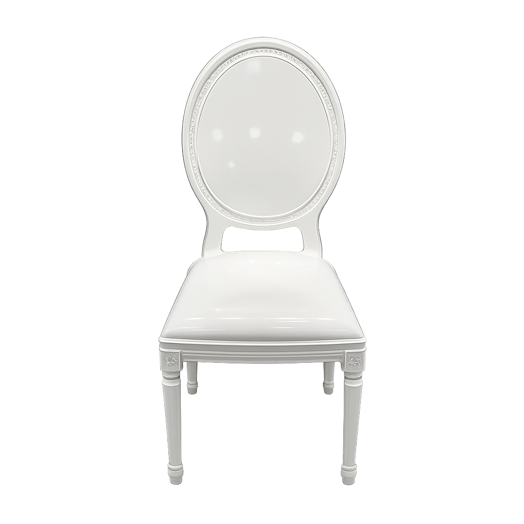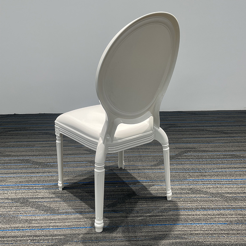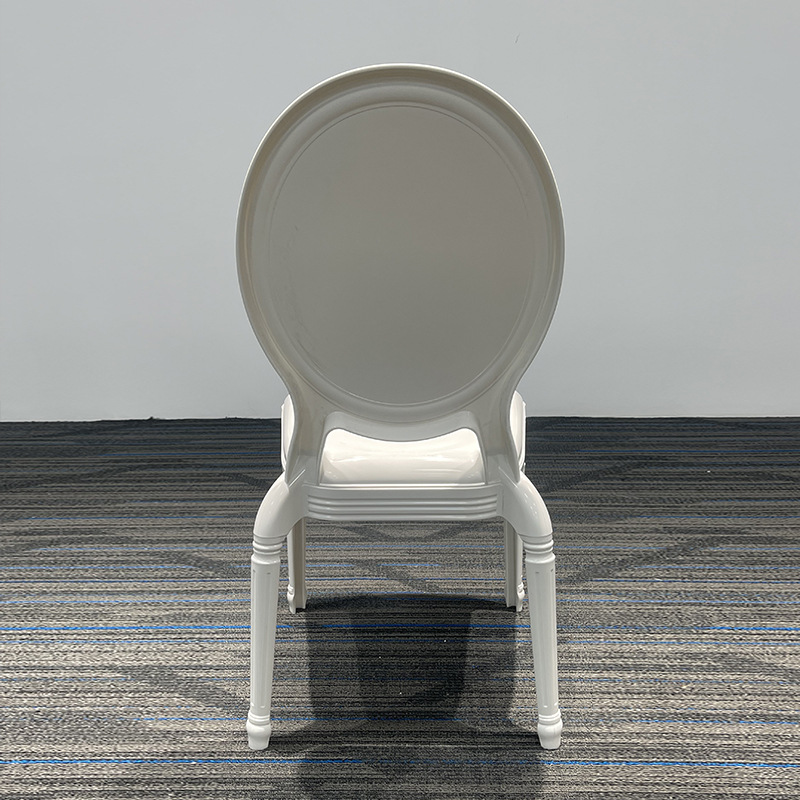 The resin medallion chair with a white frame is designed to meet the needs of professionals in the restaurant and hospitality industry. Its classic design seamlessly fits into various environments.