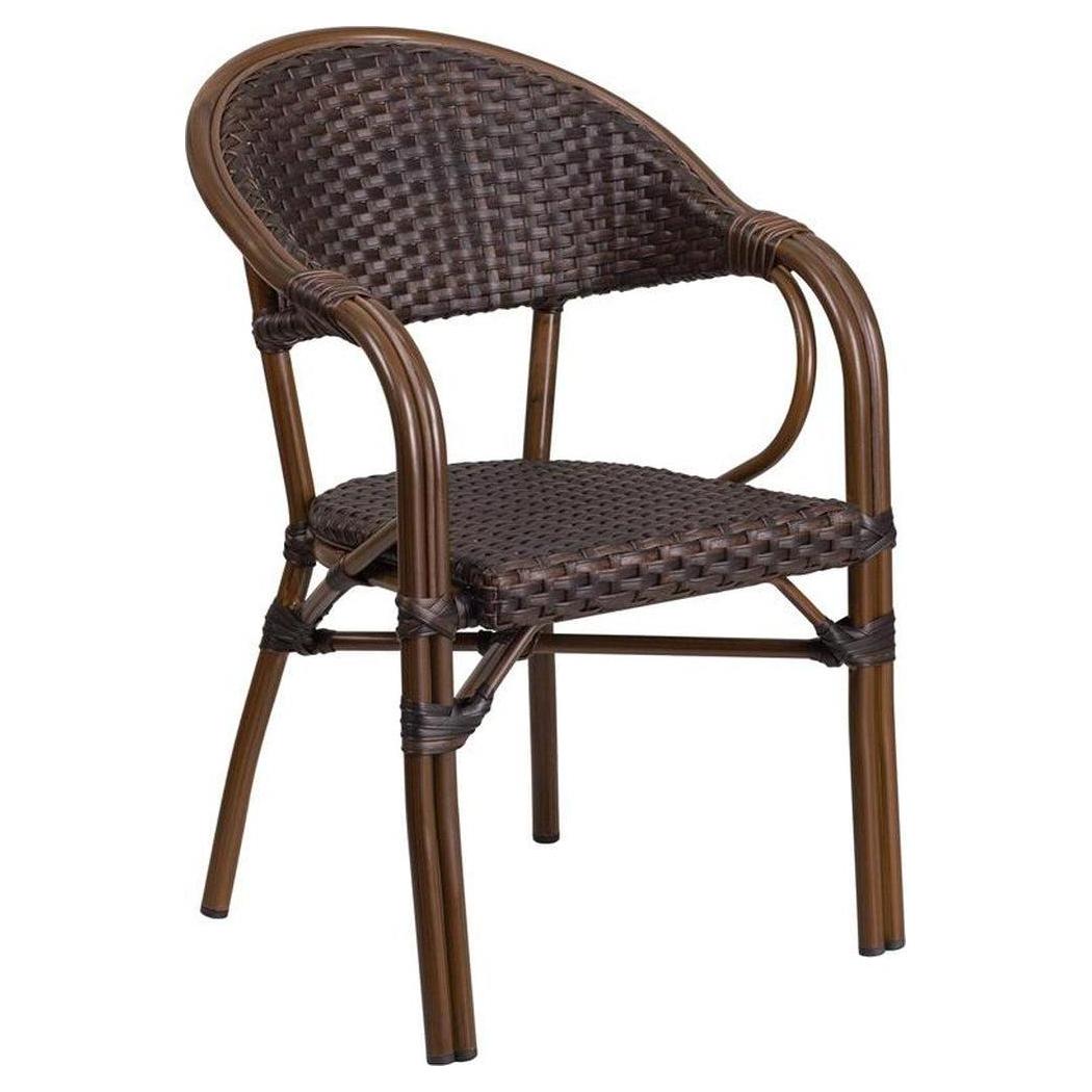 This outdoor chair combines modernity and practicality, ideal for dining spaces,